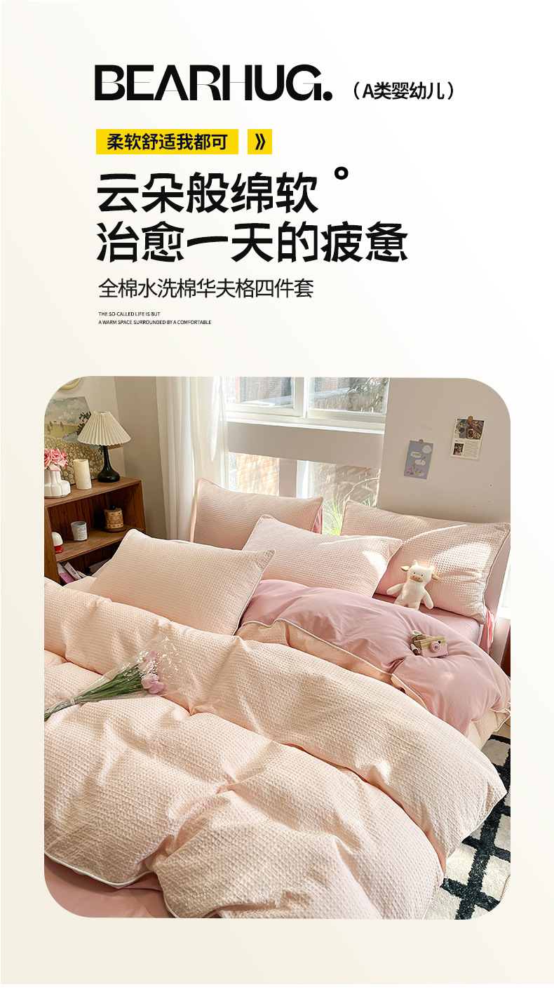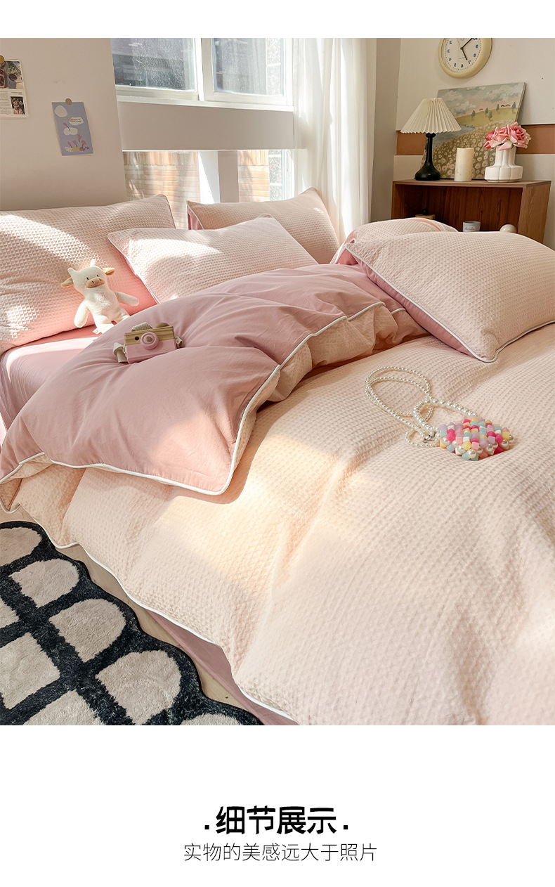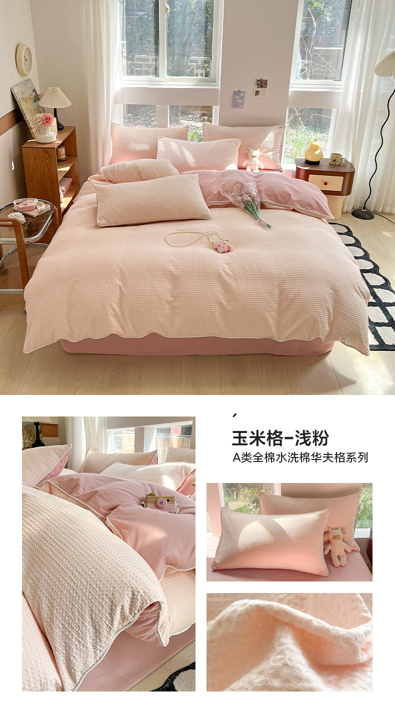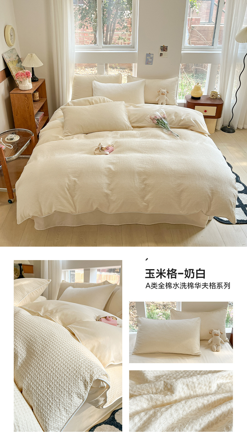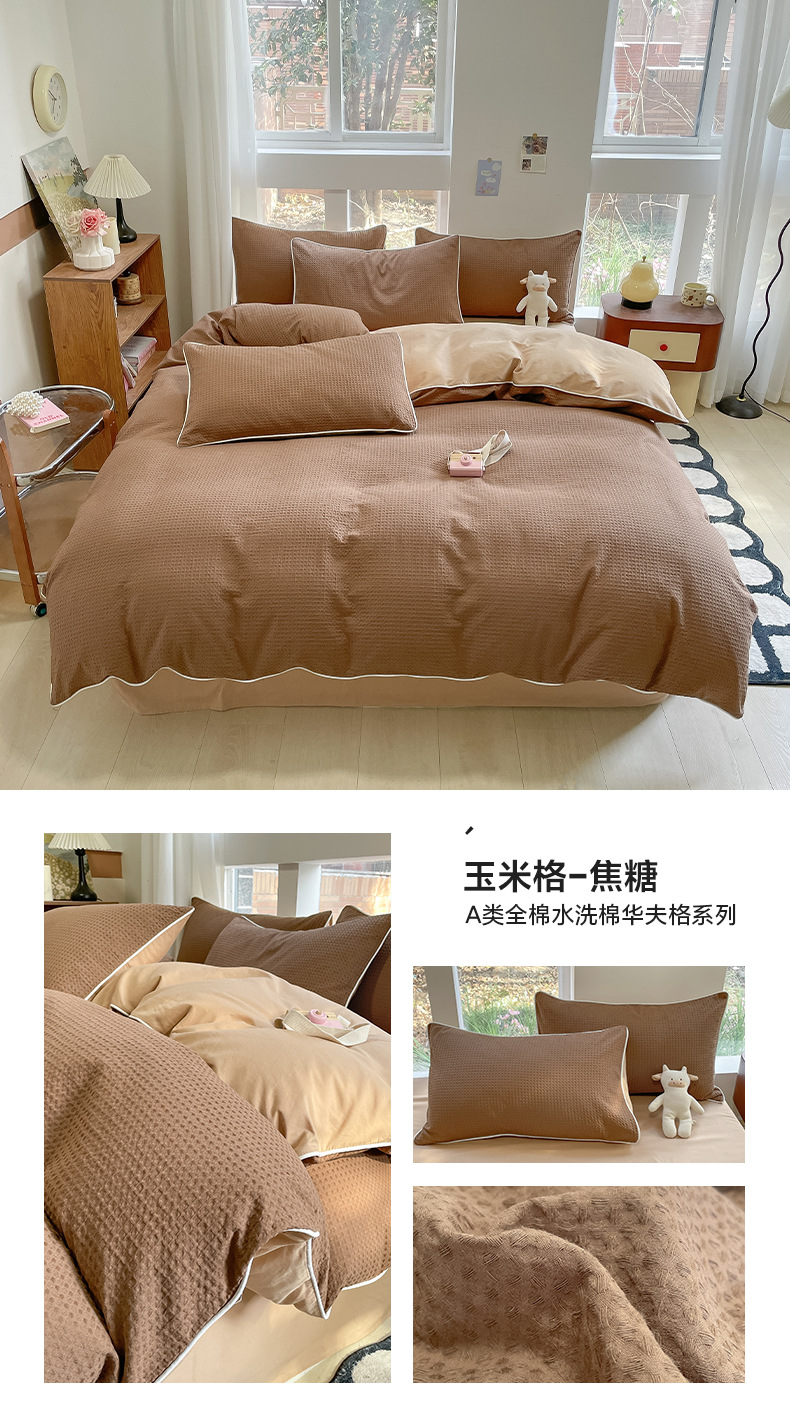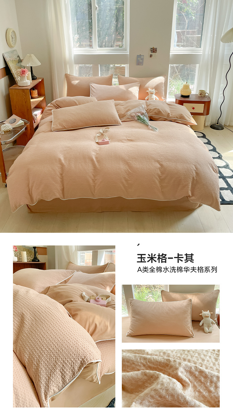 클래스 모성 및 유아 등급 와플 퓨어 코튼 4 피스 세트 인 스타일 간단한 퀼트 커버 피부 친화적 인 세척 코튼 3 피스 세트스토어 가기