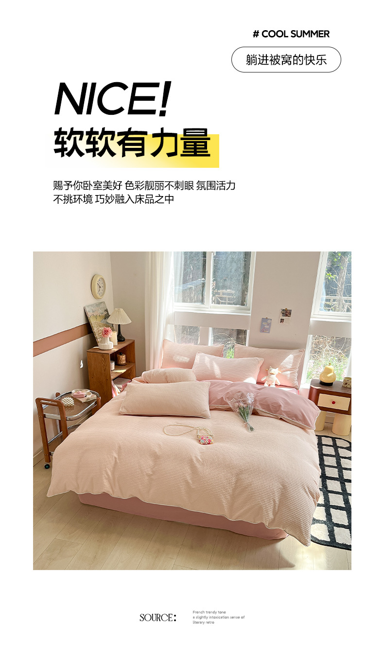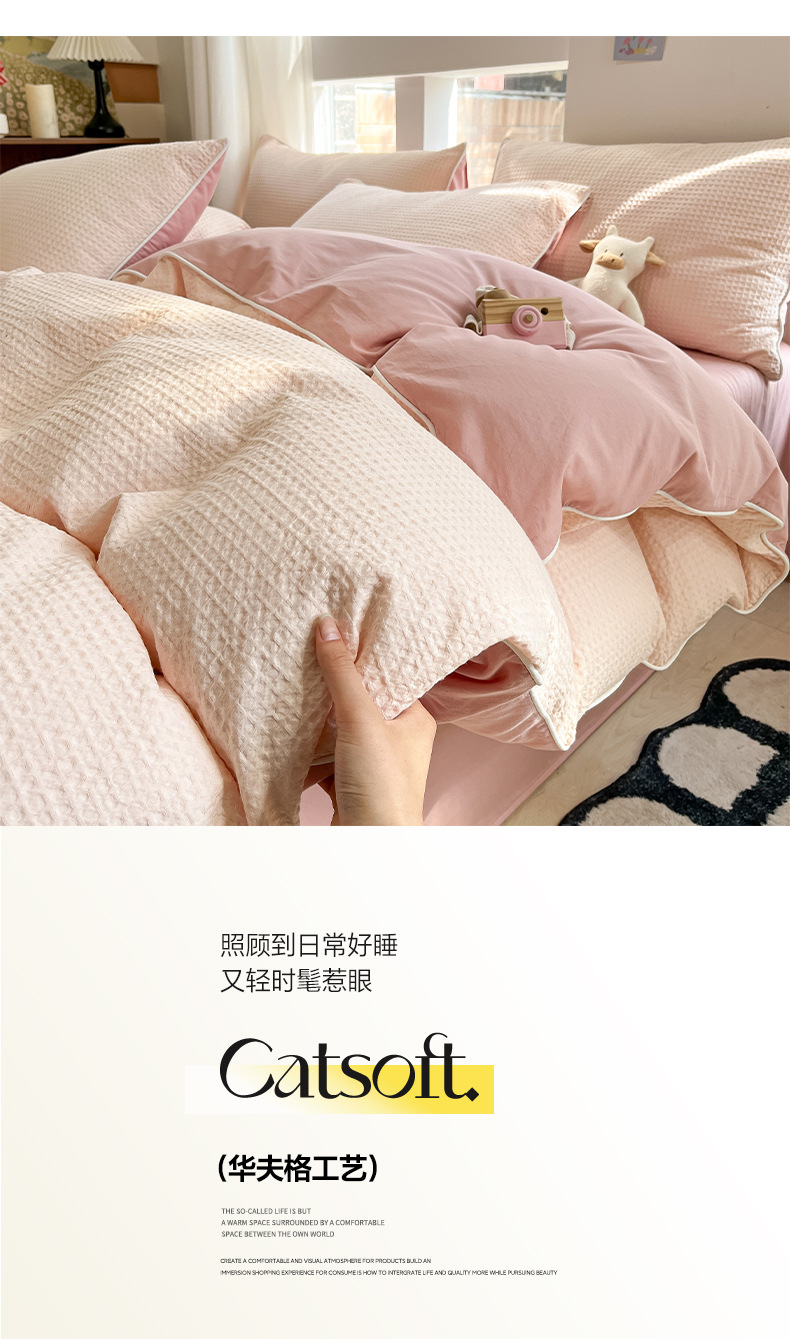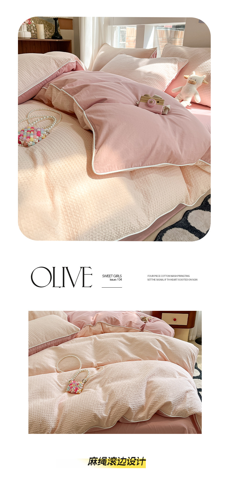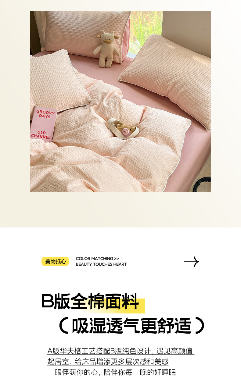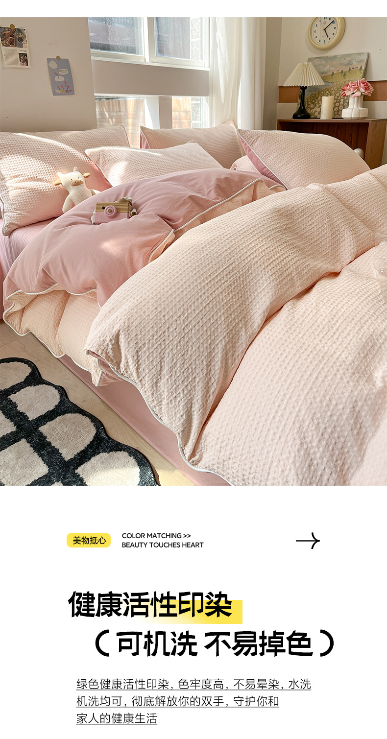 클래스 모성 및 유아 등급 와플 퓨어 코튼 4 피스 세트 인 스타일 간단한 퀼트 커버 피부 친화적 인 세척 코튼 3 피스 세트스토어 가기