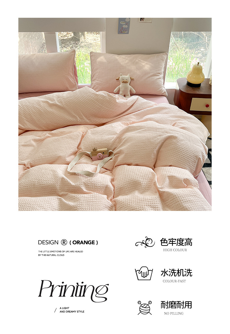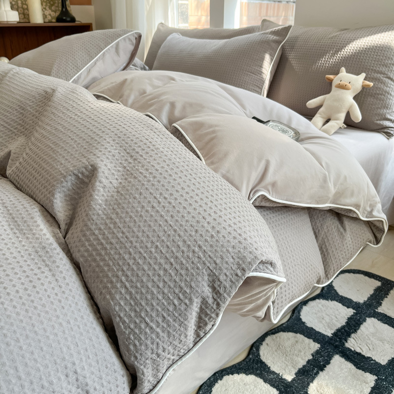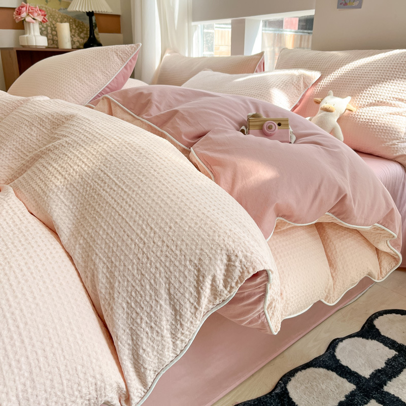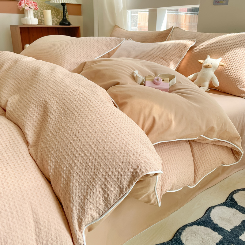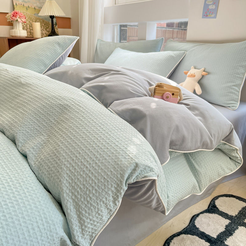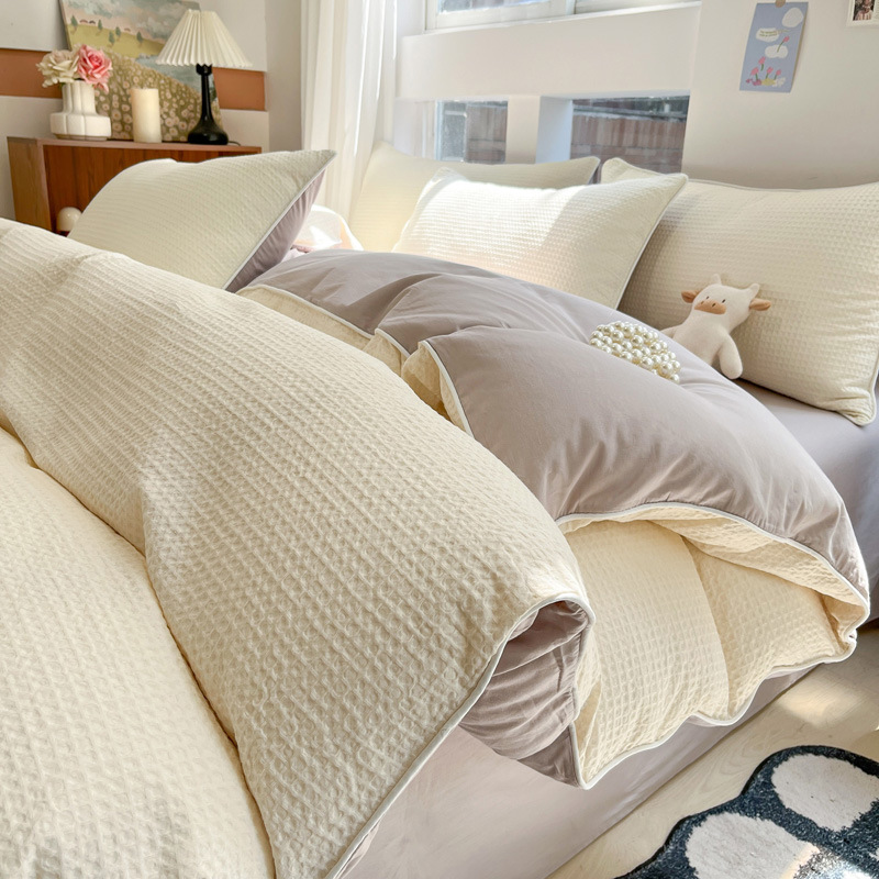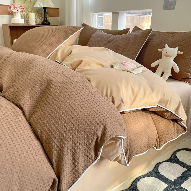클래스 모성 및 유아 등급 와플 퓨어 코튼 4 피스 세트 인 스타일 간단한 퀼트 커버 피부 친화적 인 세척 코튼 3 피스 세트