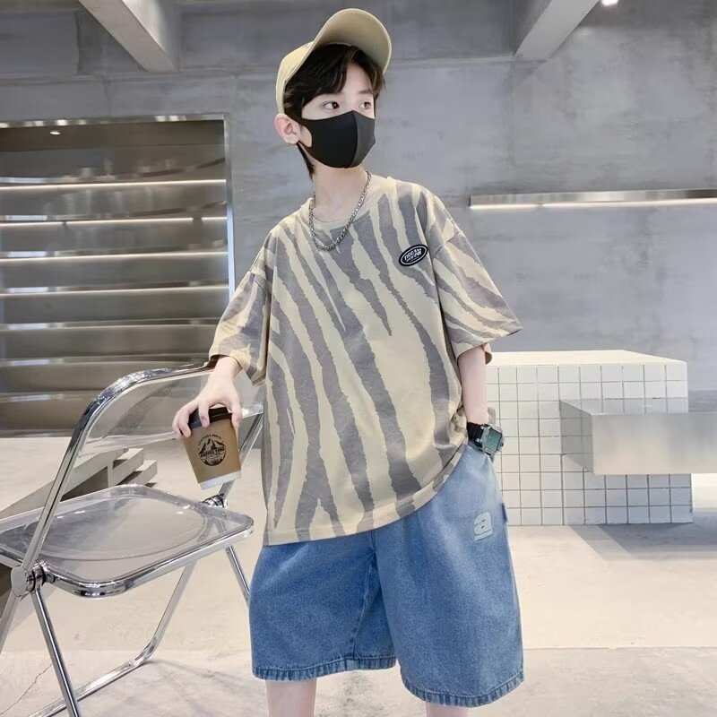 남자들의 여름 반팔 세트 2024 새로운 어린이 유행 서양식 투피스 아기의 여름 얇은 옷스토어 가기