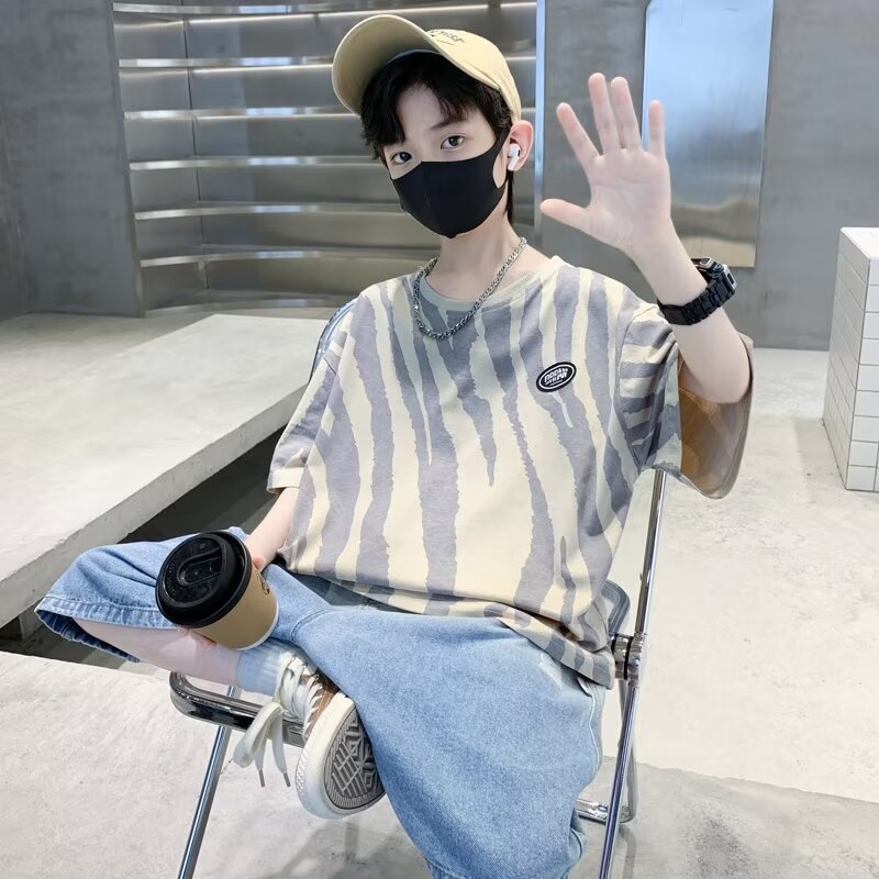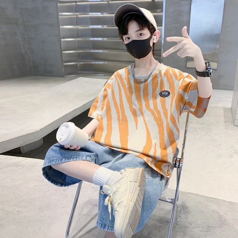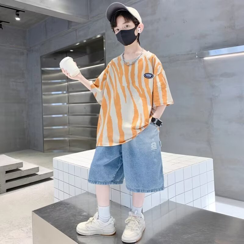 남자들의 여름 반팔 세트 2024 새로운 어린이 유행 서양식 투피스 아기의 여름 얇은 옷