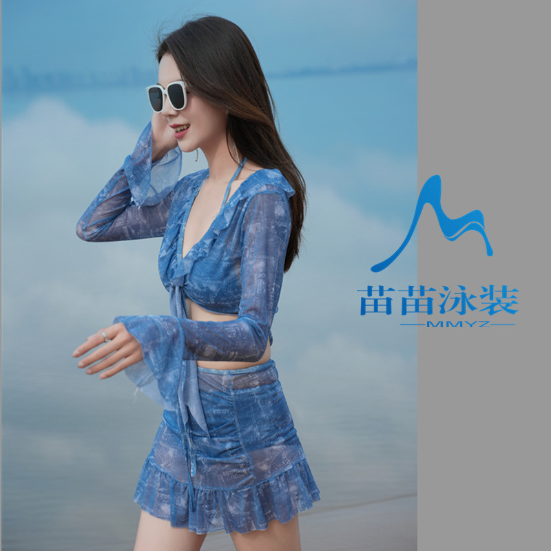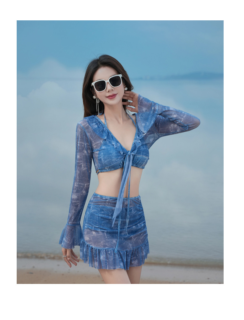 비키니 비키니 4 피스 스플릿 수영복 여성 섹시한 긴 소매 스파 휴가 레이스 보수적 인 수영복 여성