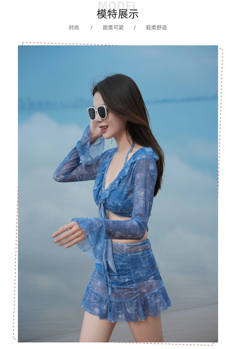 비키니 비키니 4 피스 스플릿 수영복 여성 섹시한 긴 소매 스파 휴가 레이스 보수적 인 수영복 여성스토어 가기