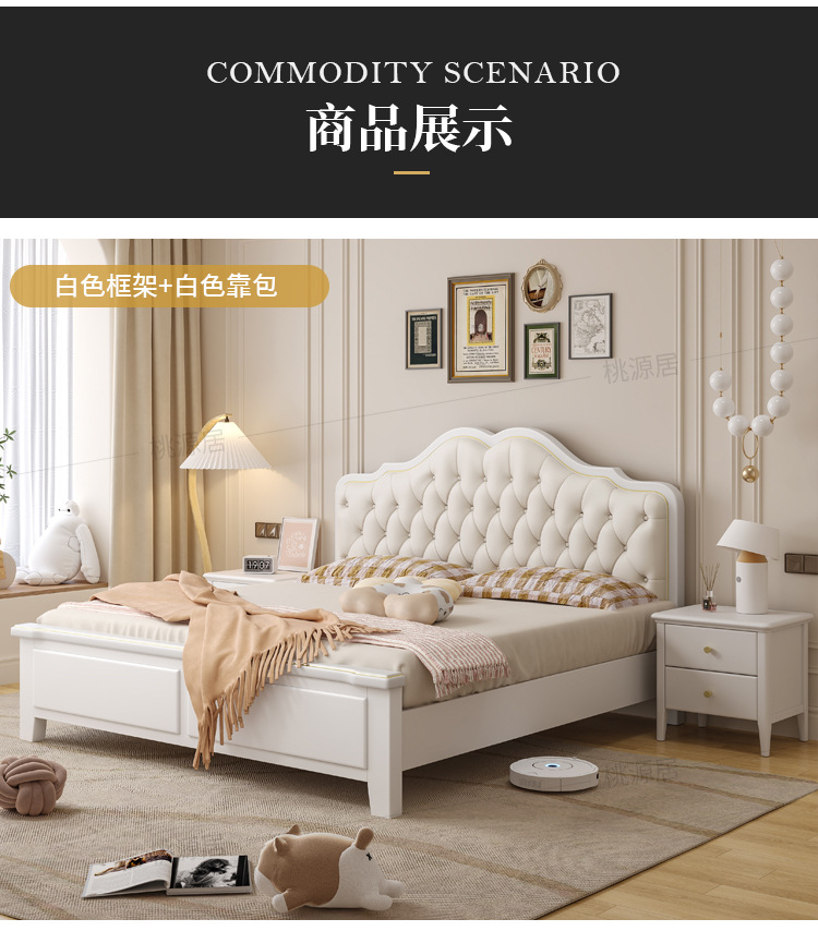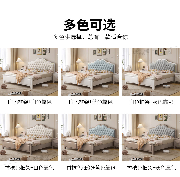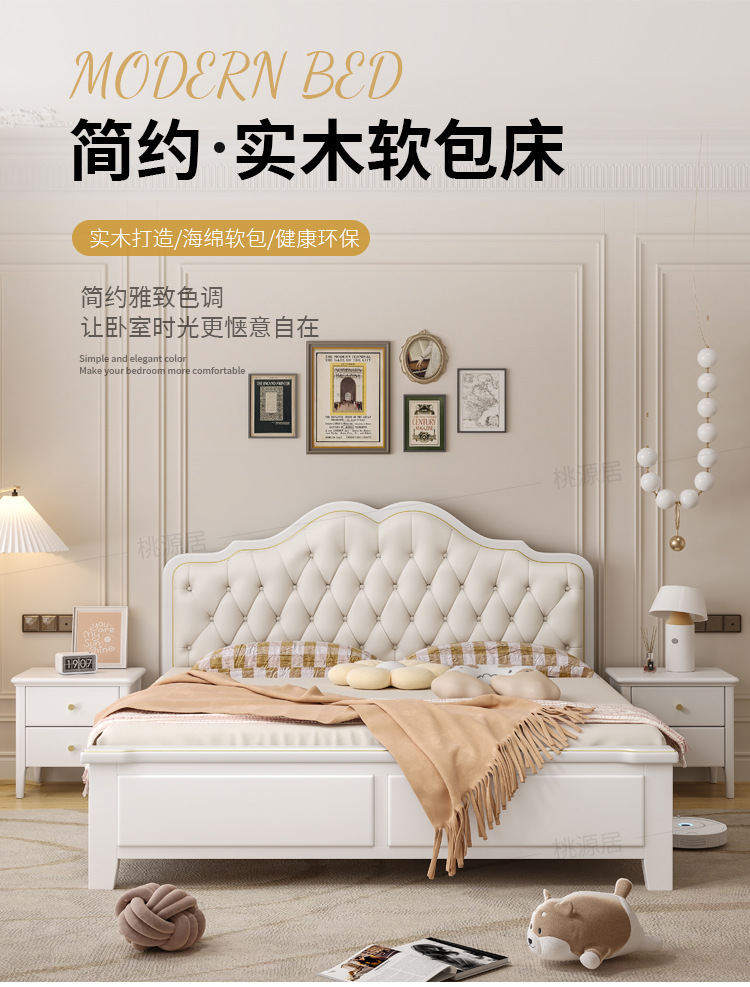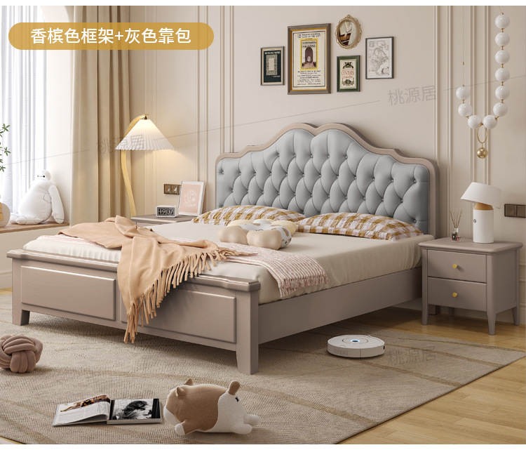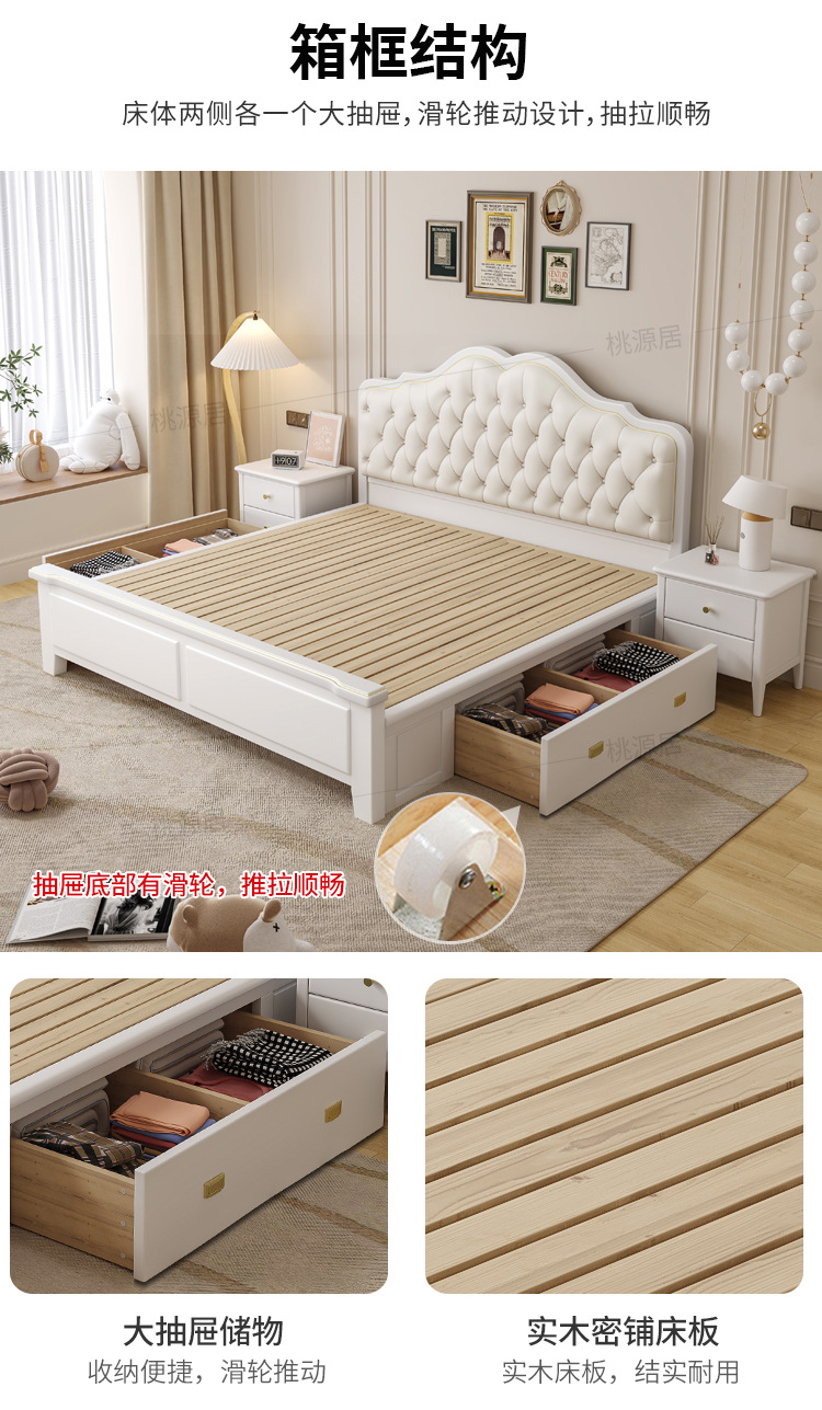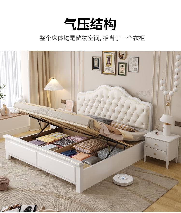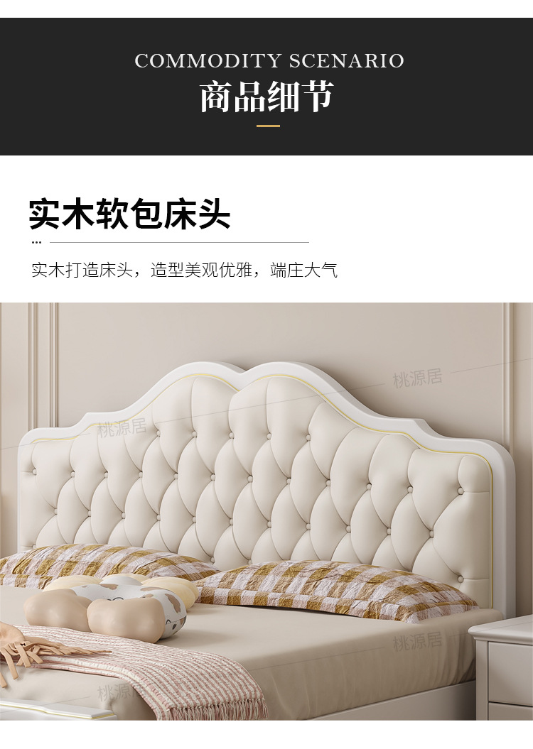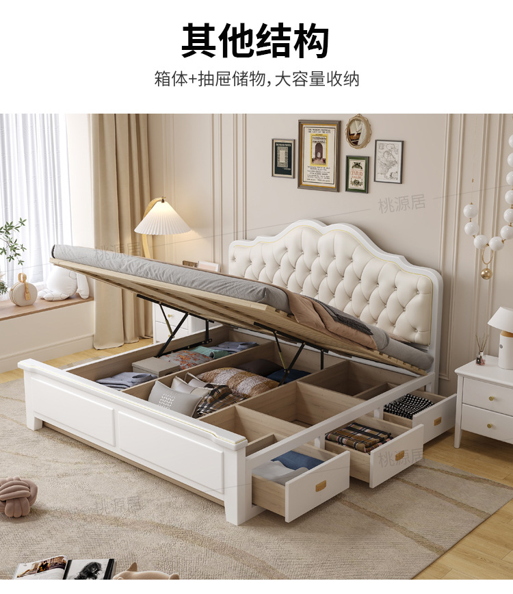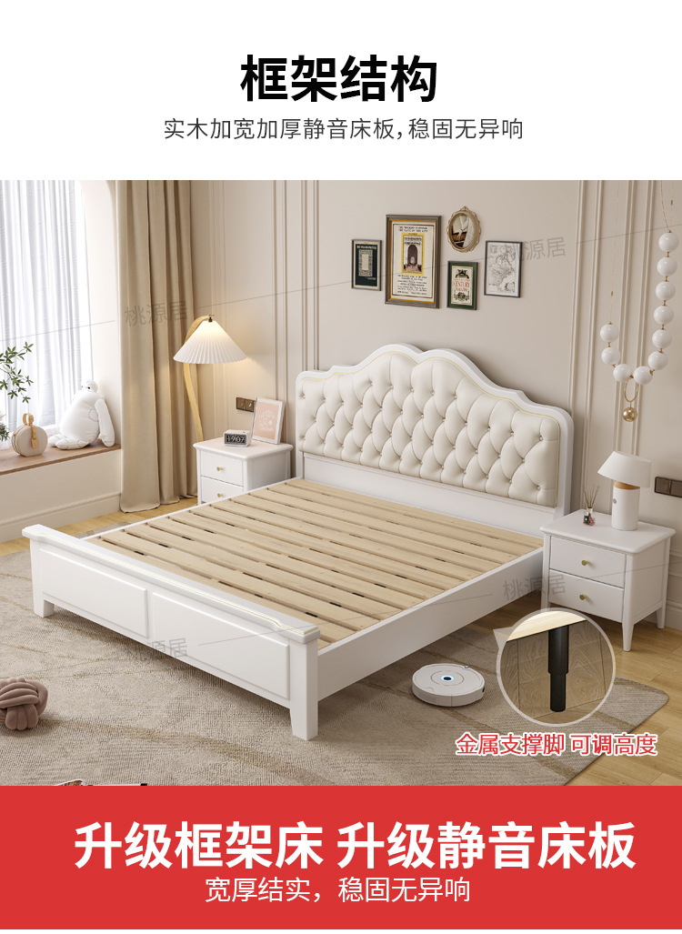 미국 스타일 가벼운 고급 단단한 나무 침대 더블 1.8 m 마스터 침실 부드러운 현대 웨딩 침대 좋은 프랑스 공주 침대 내구성스토어 가기