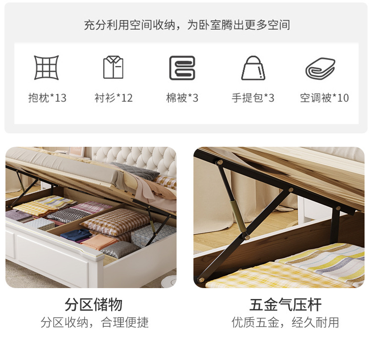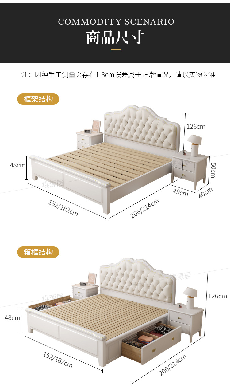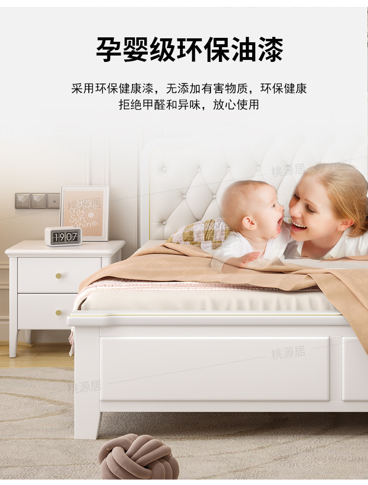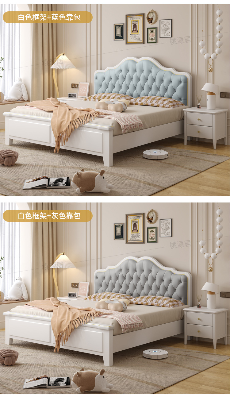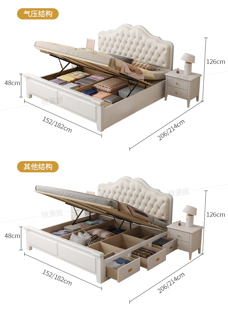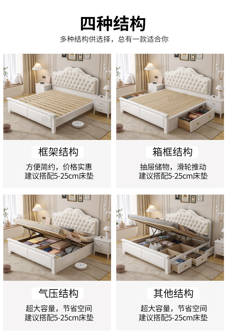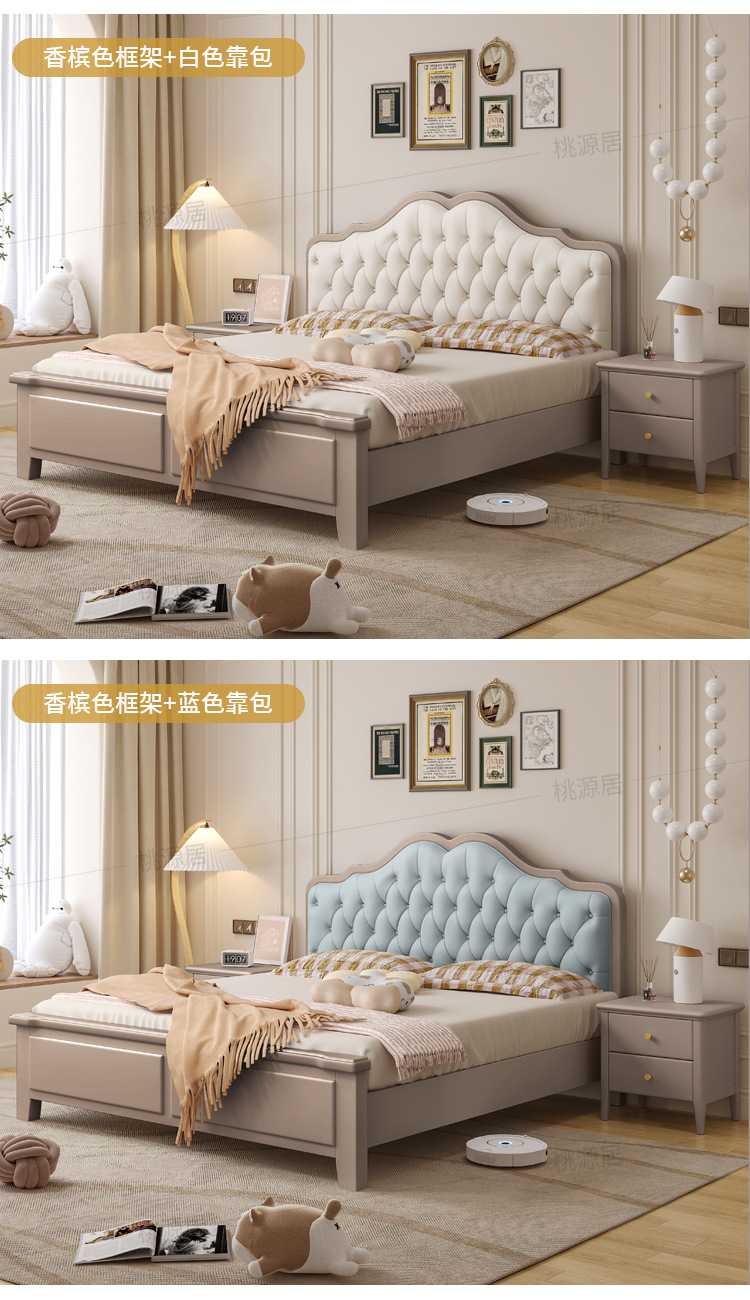 미국 스타일 가벼운 고급 단단한 나무 침대 더블 1.8 m 마스터 침실 부드러운 현대 웨딩 침대 좋은 프랑스 공주 침대 내구성스토어 가기
