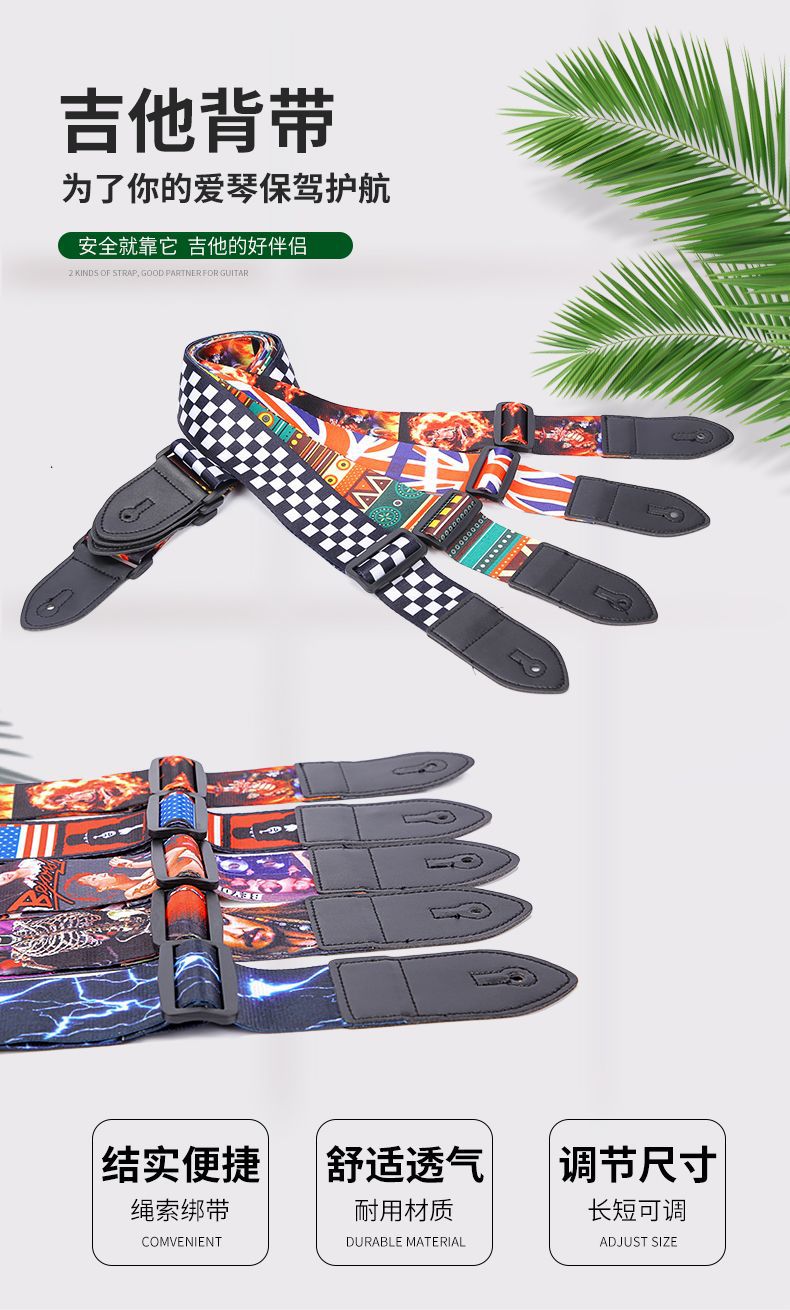 기타 스트랩 포크 일렉트릭 기타베이스 소년과 소녀는 두꺼운 펀치없는 어깨 스트랩 폴리 에스터 인쇄 스트랩스토어 가기