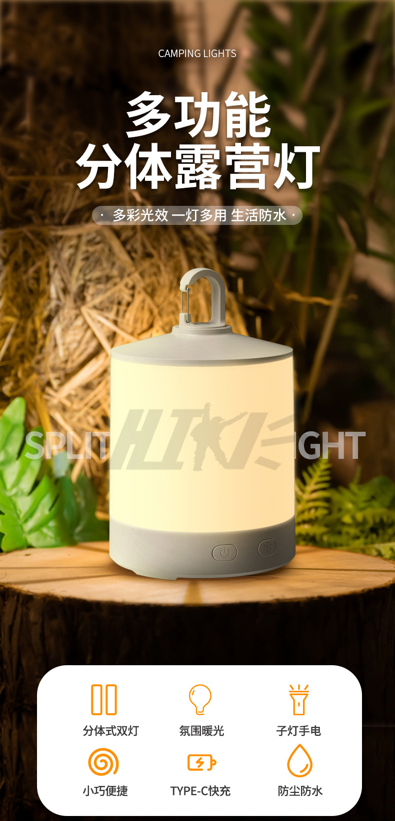 캠핑 야외 다기능 태양 캠핑 램프 분리 된 두 배 램프 디자인 출력 다채로운 캠핑 램프 선물