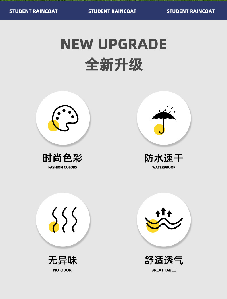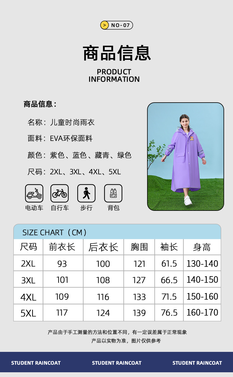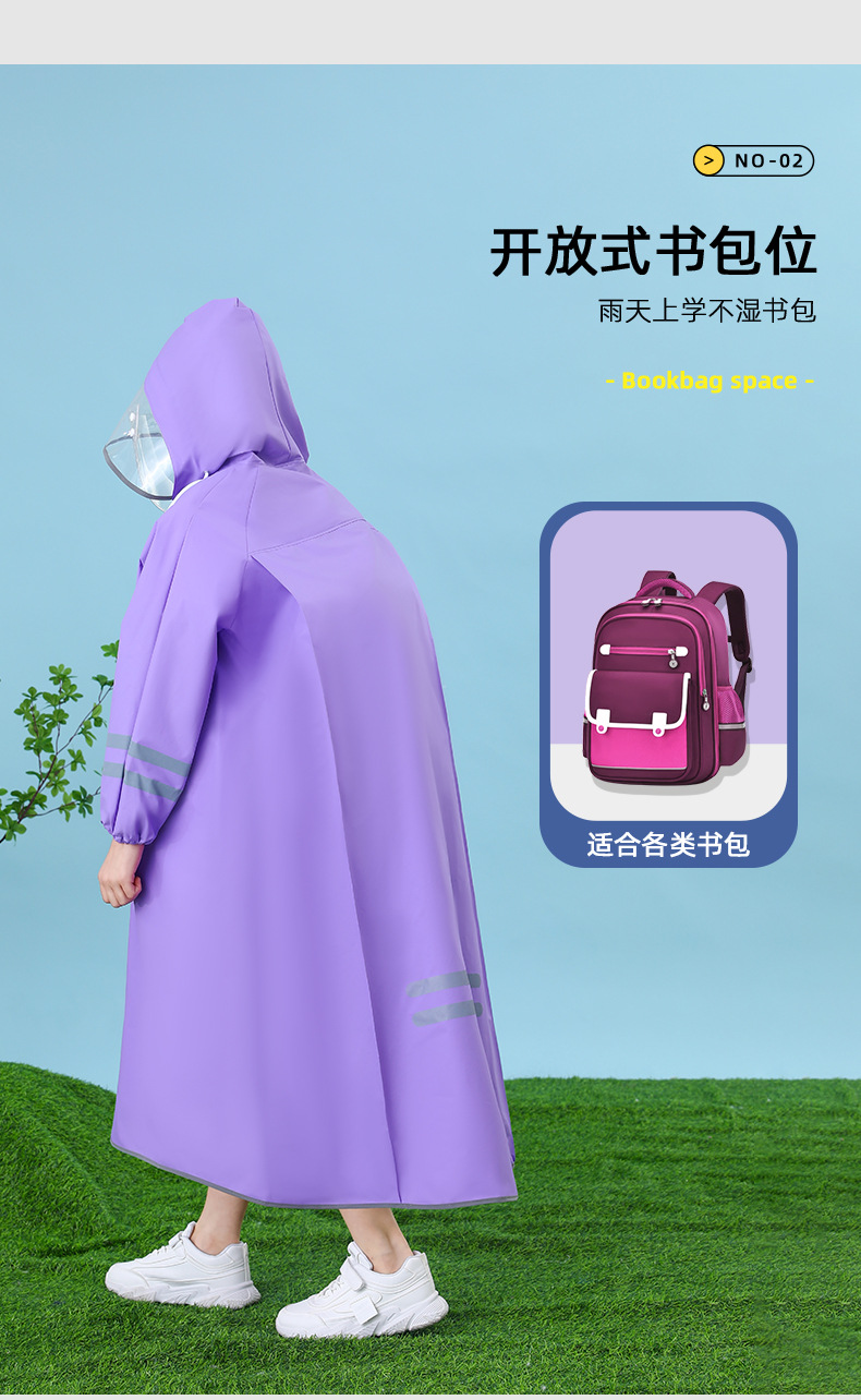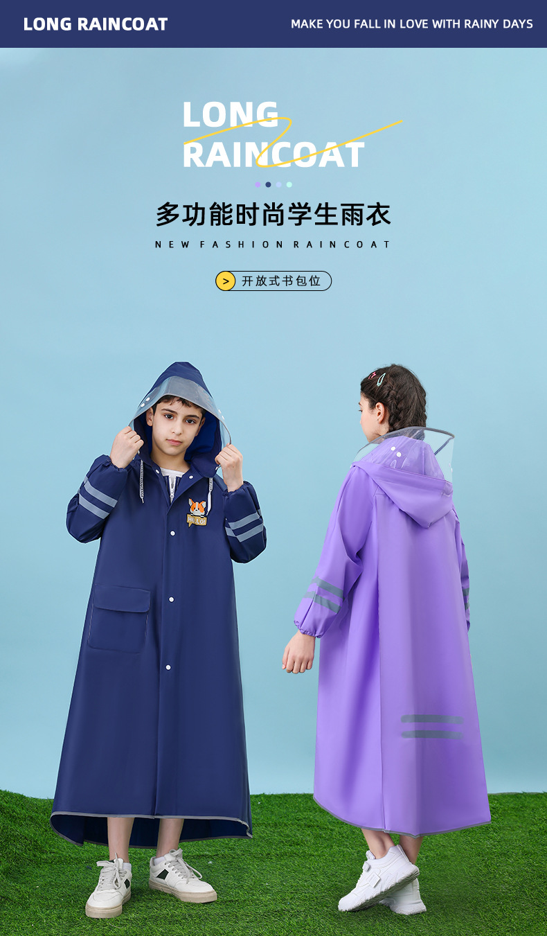 남성과 여성을위한 새로운 어린이 비옷, 중학생 및 중학생 및 초등학생, 학교 폭풍 비 스트랩, 학교 가방, 롱 폰초