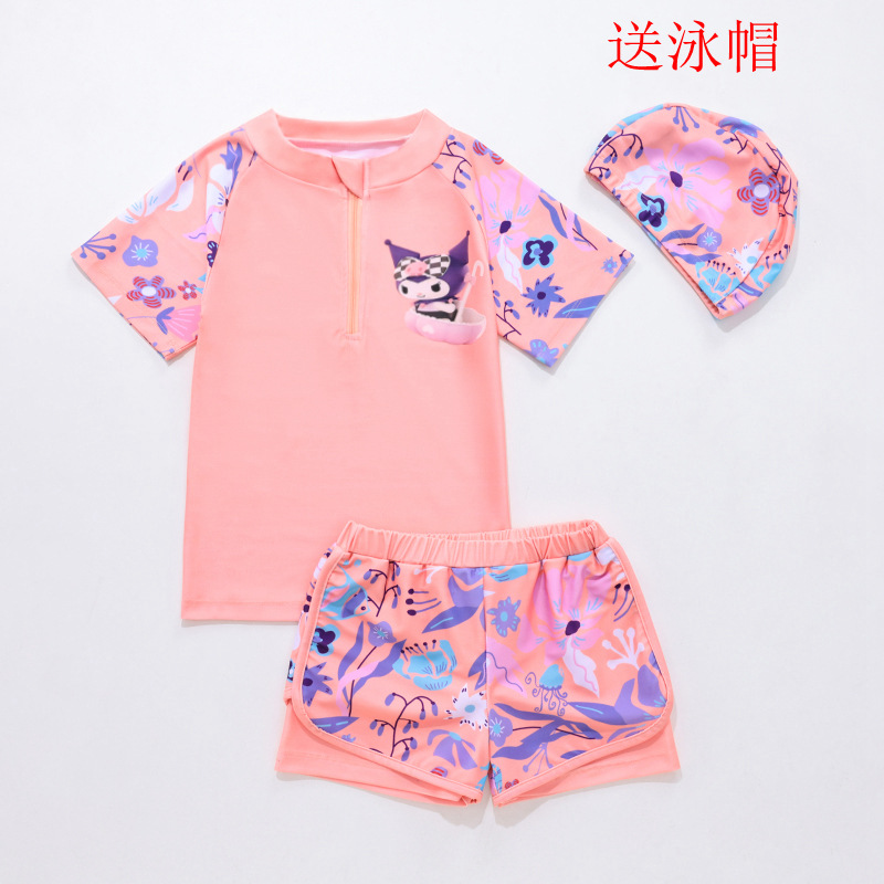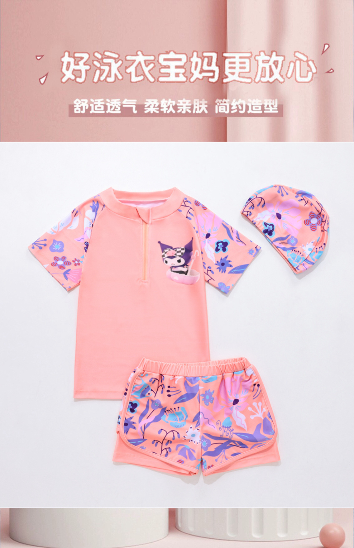 쿠로미 여아 수영복 세트 2025 신상 중대형 어린이 훈련용 전문 수영복 속건성 투피스 세트 트렌디스토어 가기