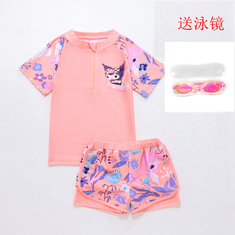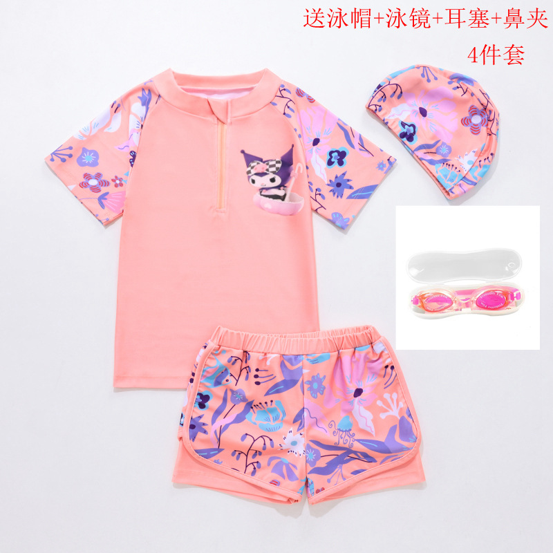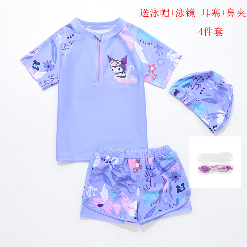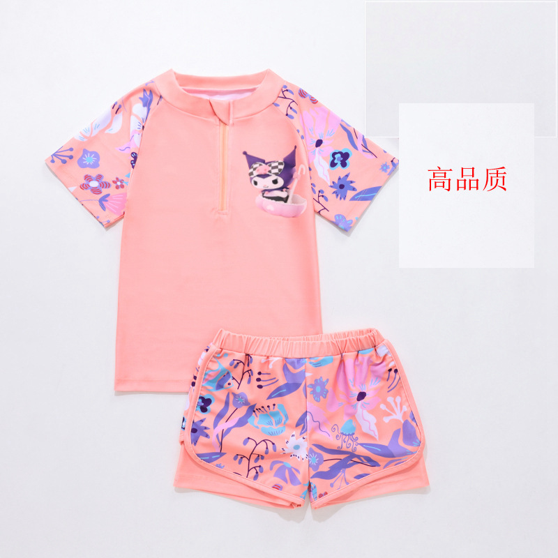 쿠로미 여아 수영복 세트 2025 신상 중대형 어린이 훈련용 전문 수영복 속건성 투피스 세트 트렌디