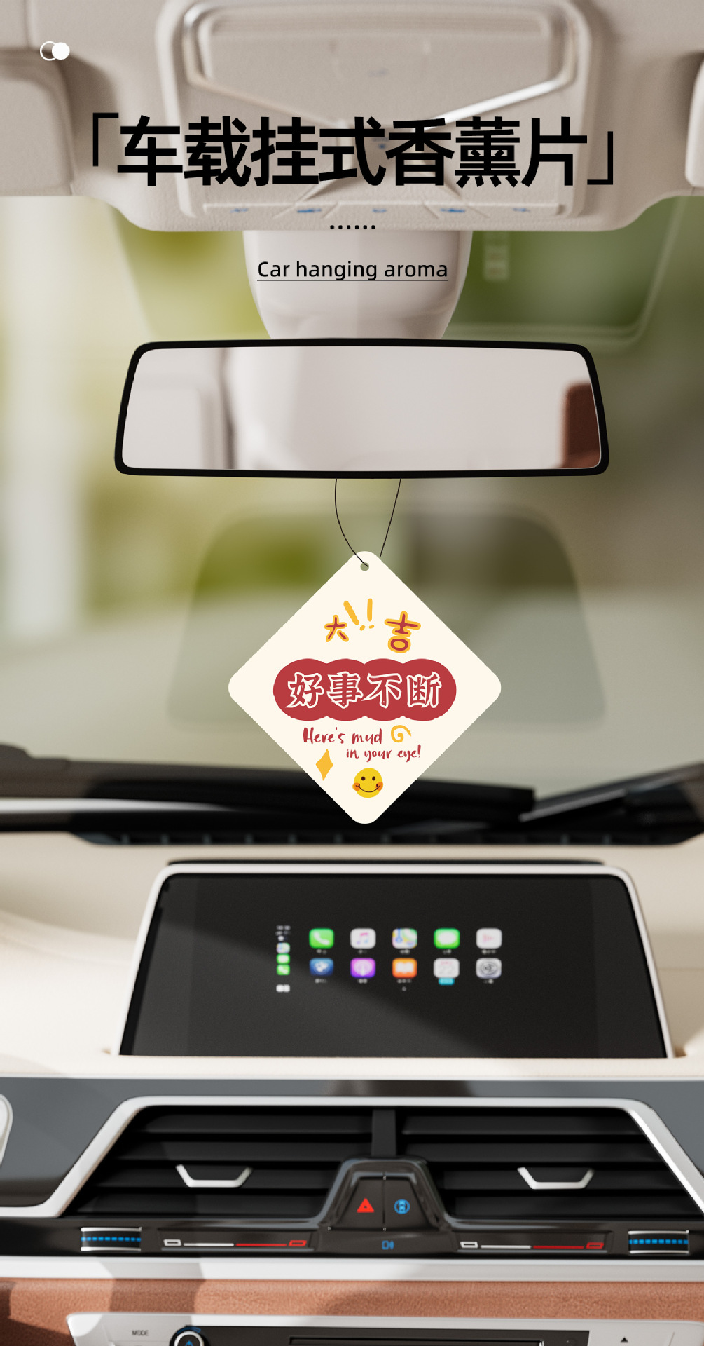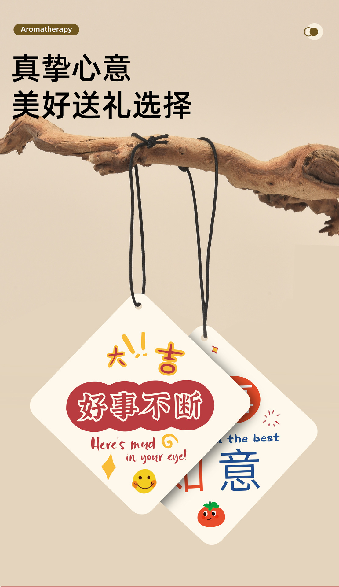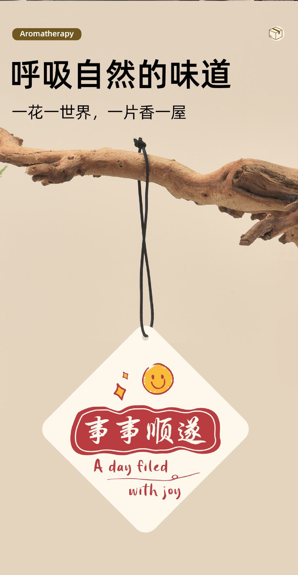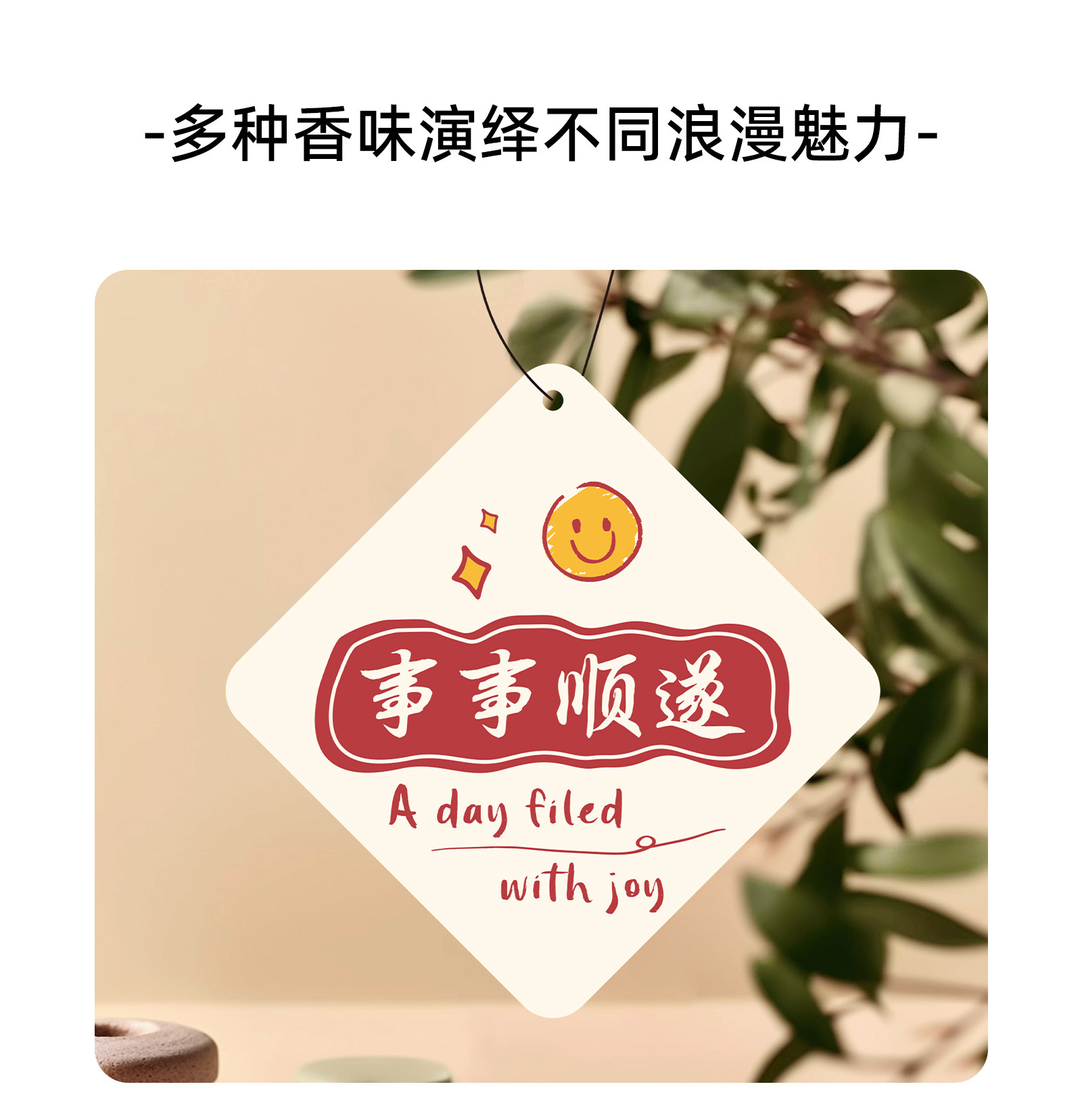 【安装方法】:把香片上方的弹力绳子扣在后视镜、衣柜、包包等任意位置,使用场景广泛,造型卡通可爱,芳香宜人