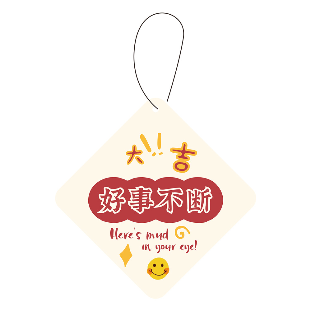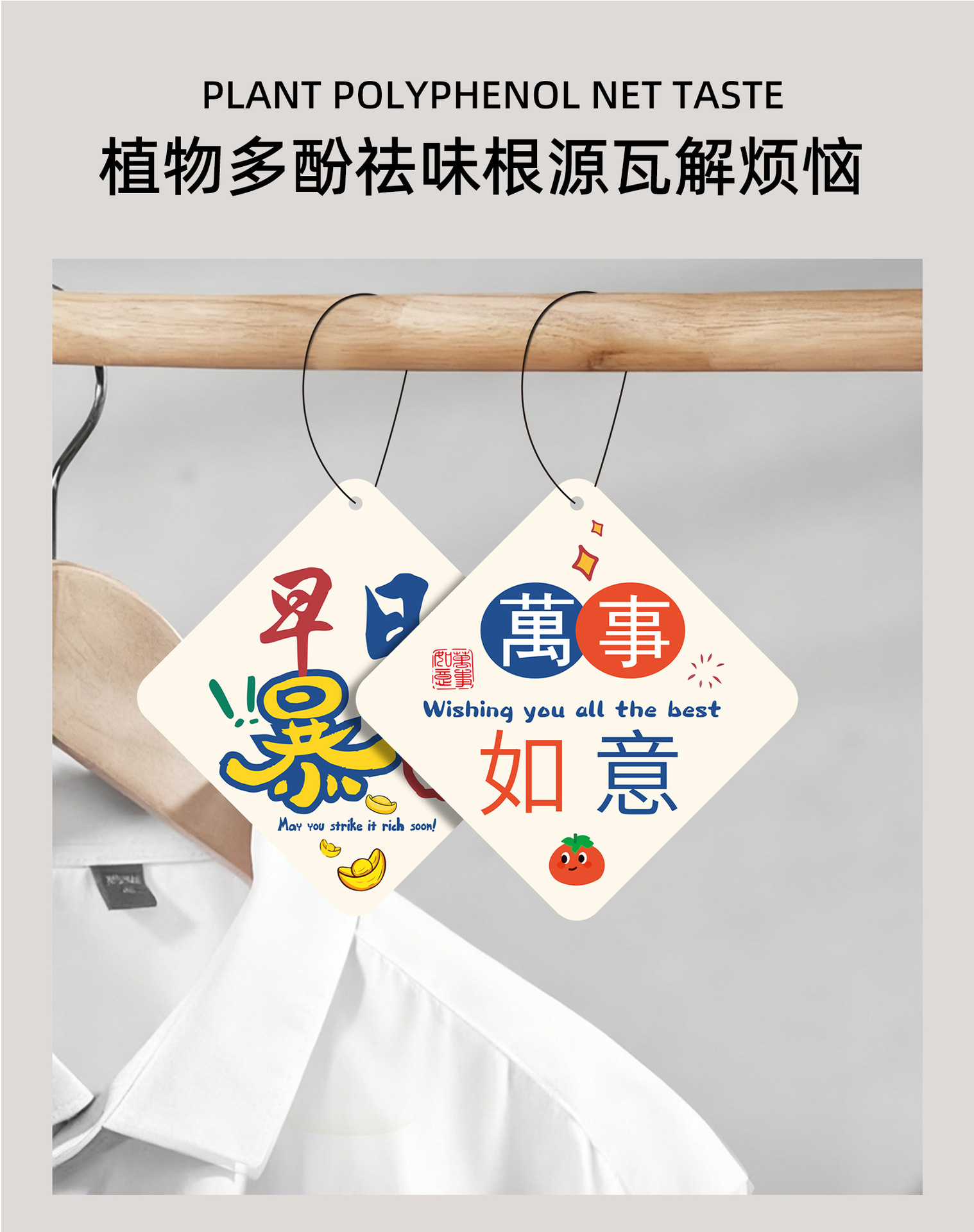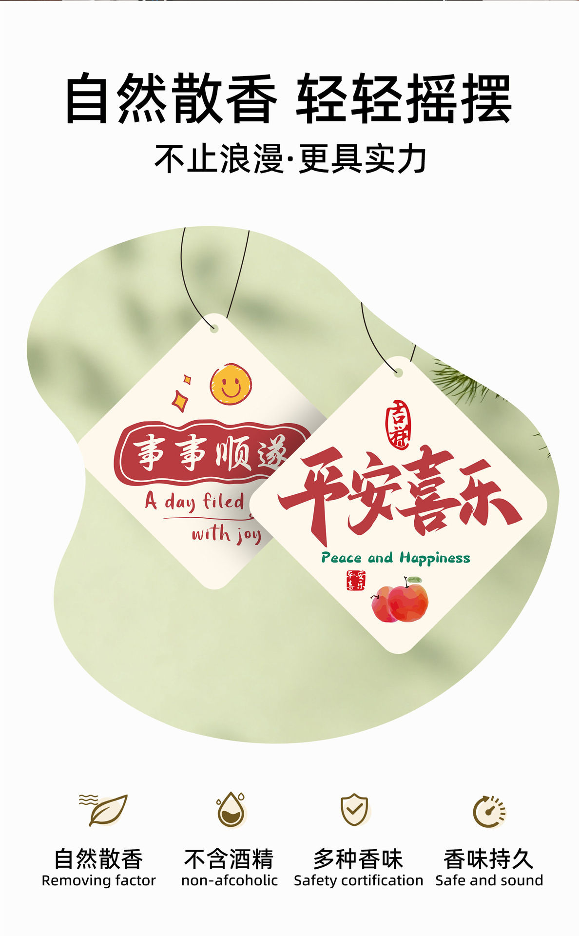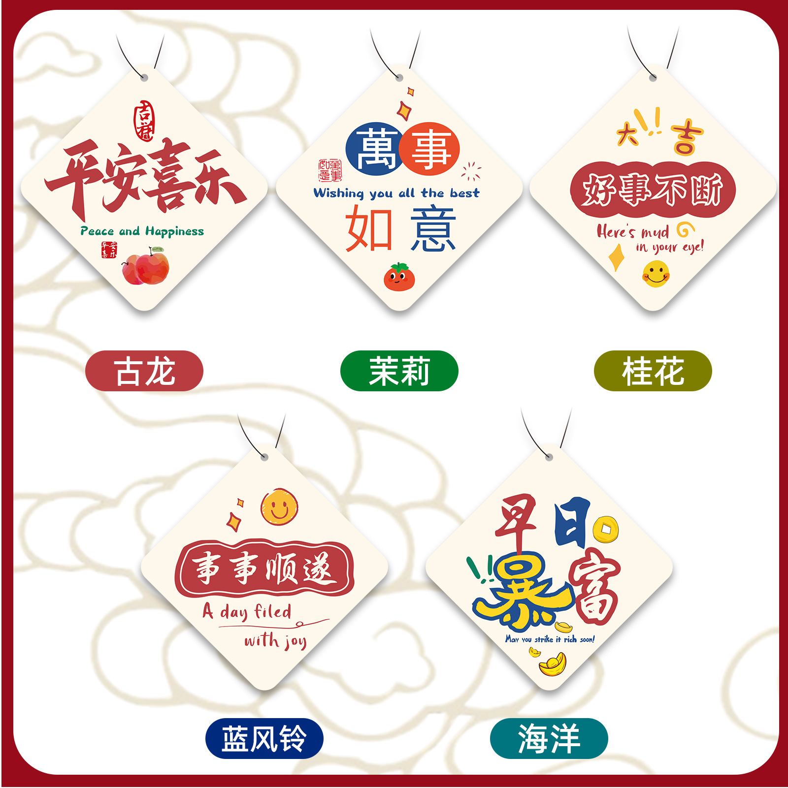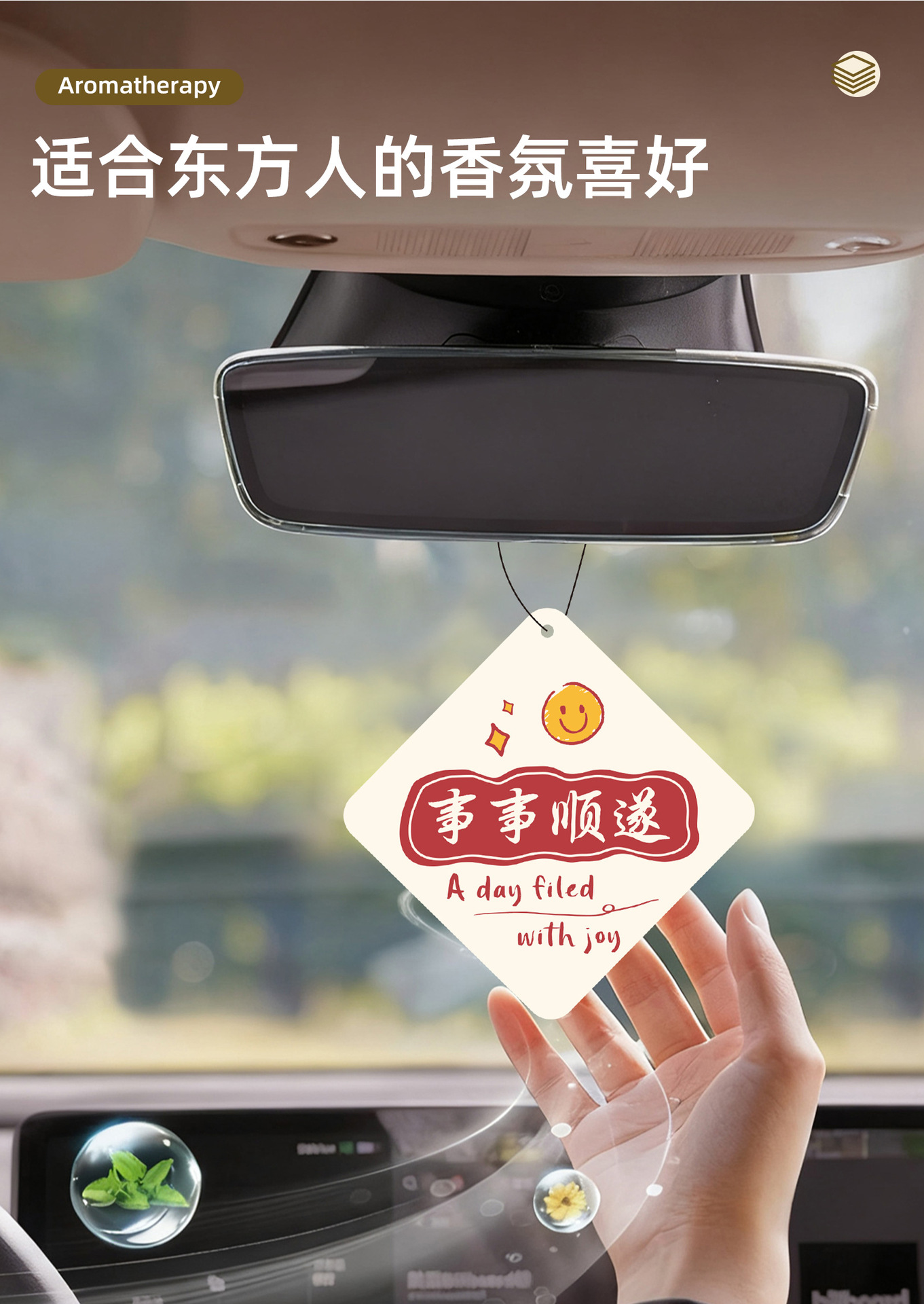 【安装方法】:把香片上方的弹力绳子扣在后视镜、衣柜、包包等任意位置,使用场景广泛,造型卡通可爱,芳香宜人