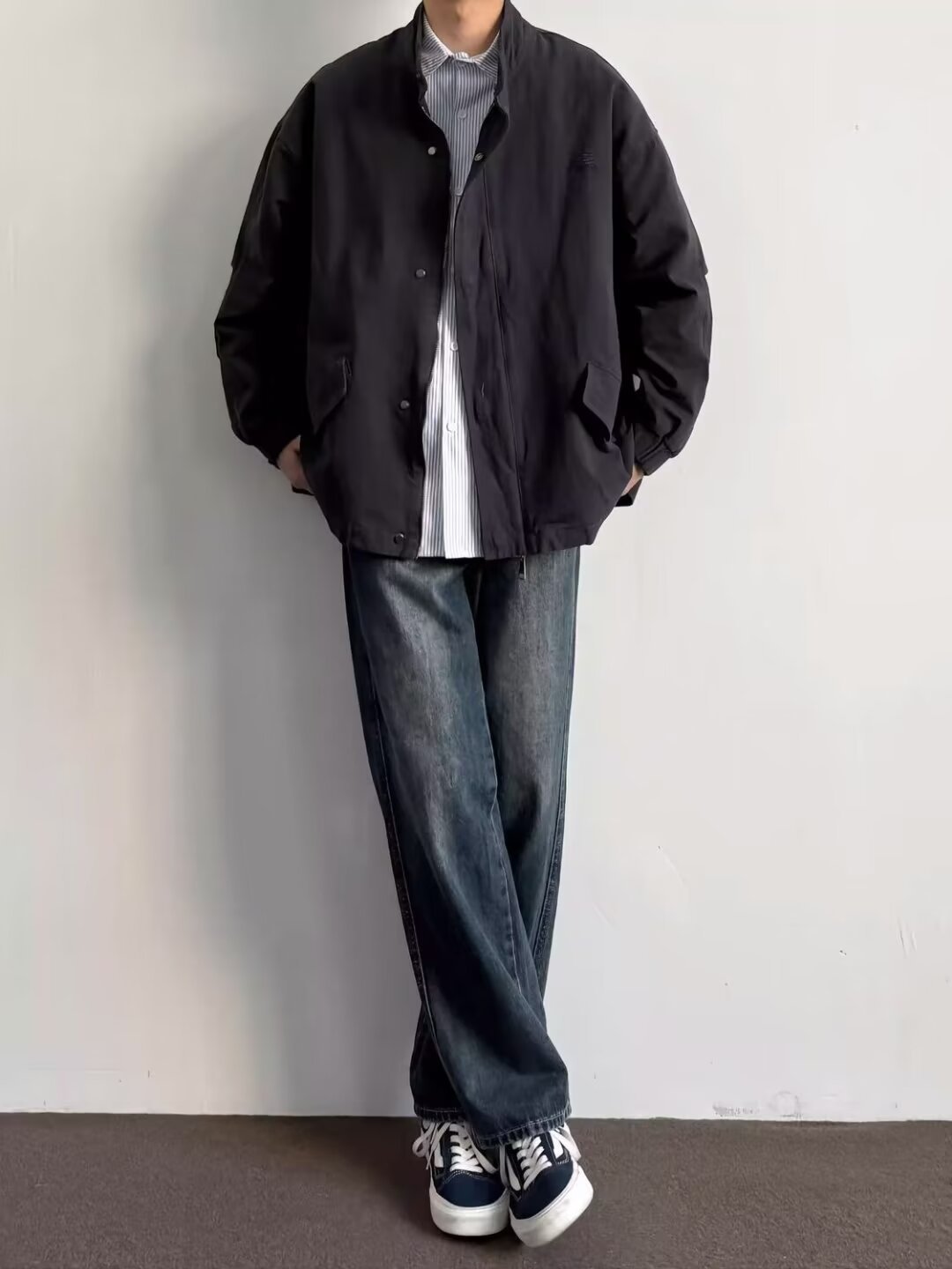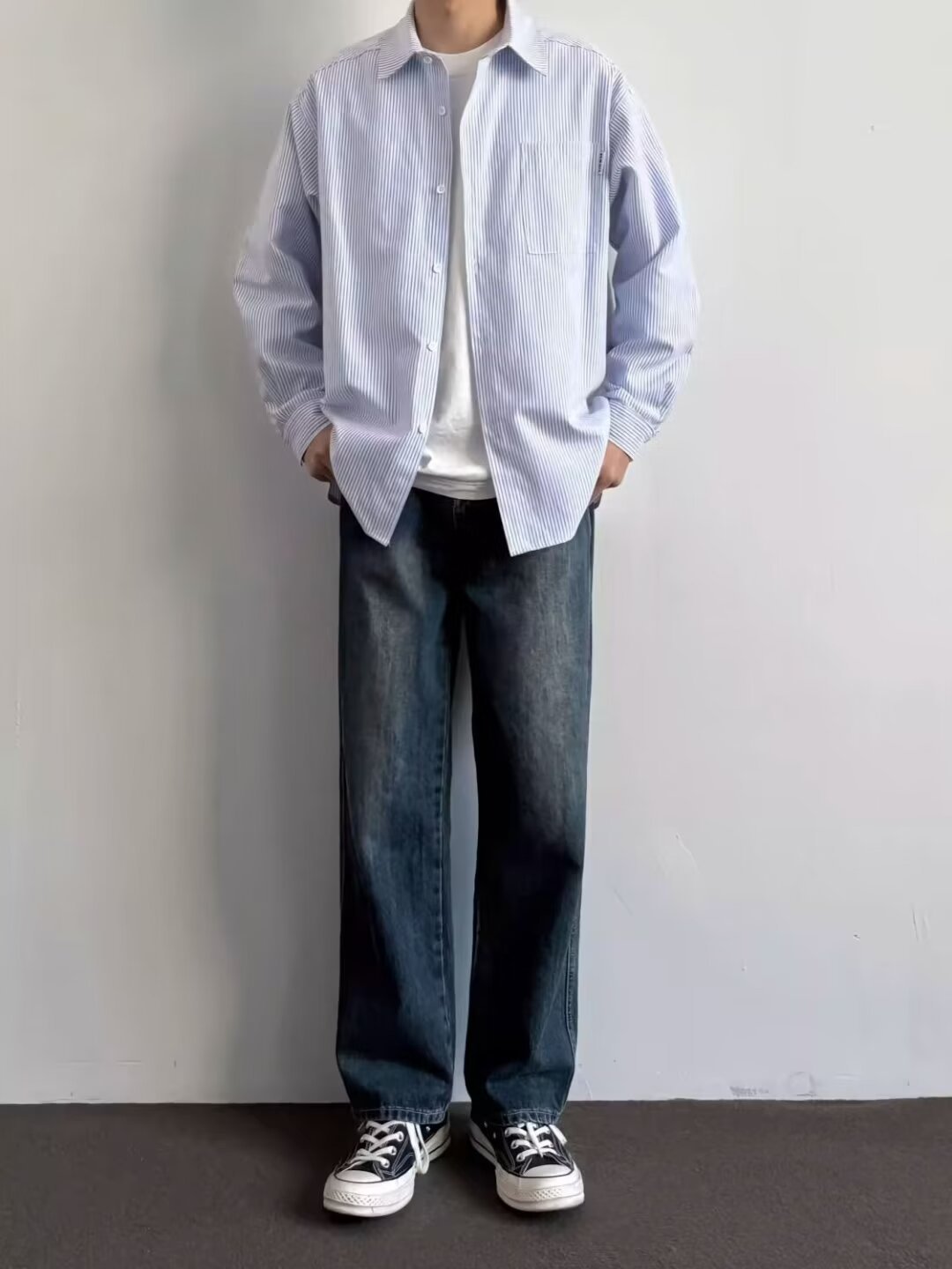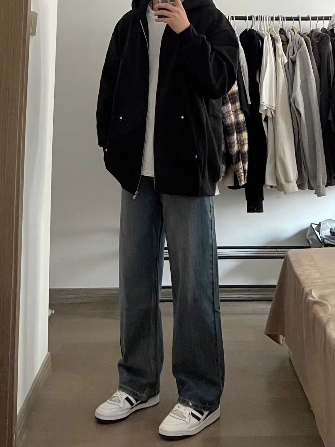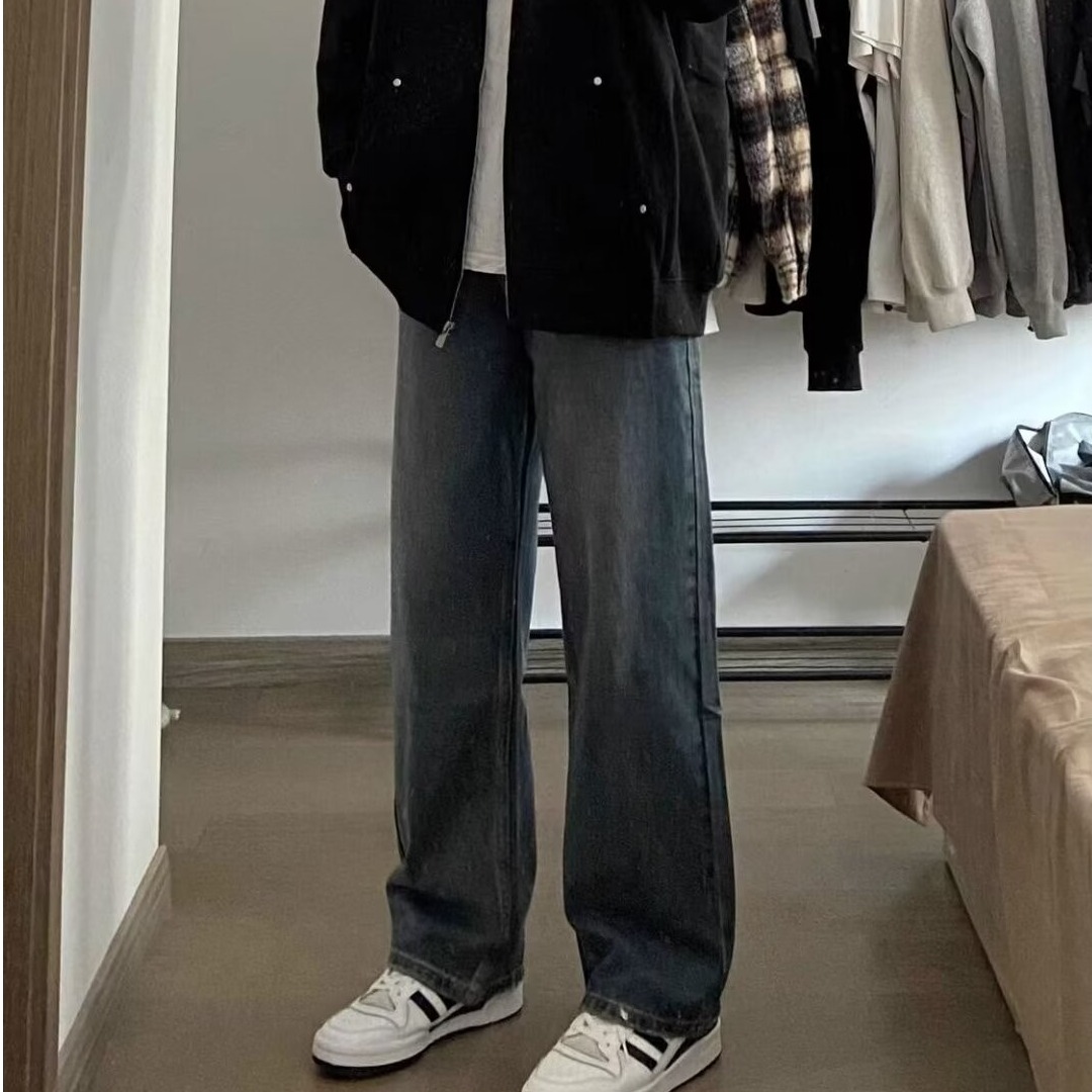 하이 스트리트 와이드 레그 청바지 남자 봄과 가을 트렌디 브랜드 느슨한 스트레이트 올매치 유행 한국식 바지스토어 가기