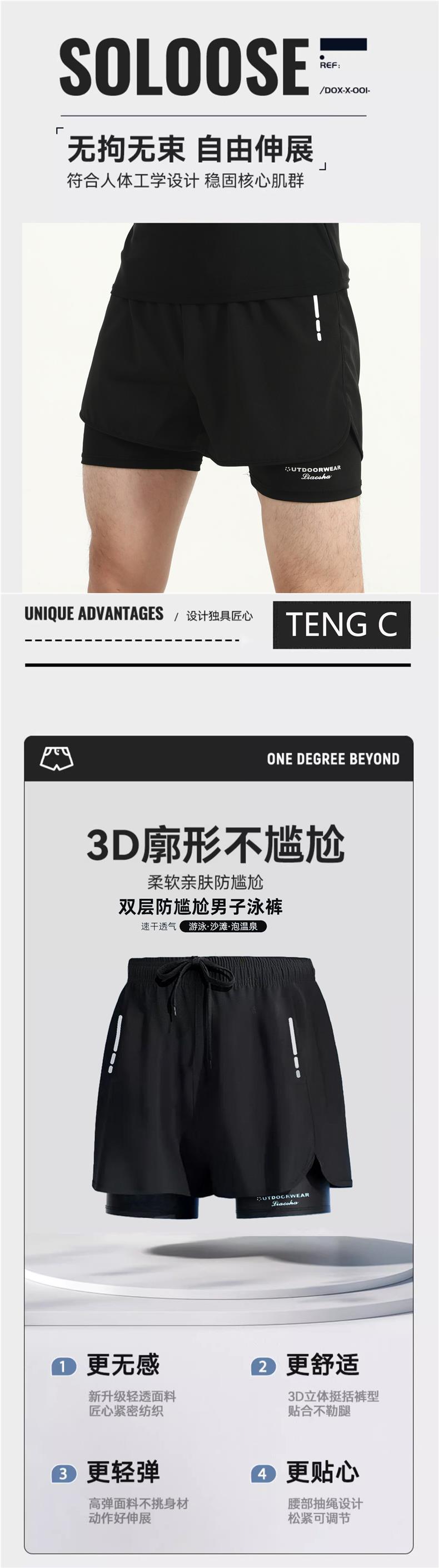 • 블랙 탑 일방적 스포츠 수영 트렁크