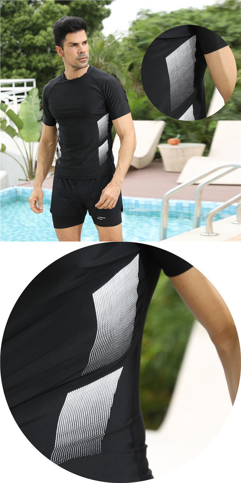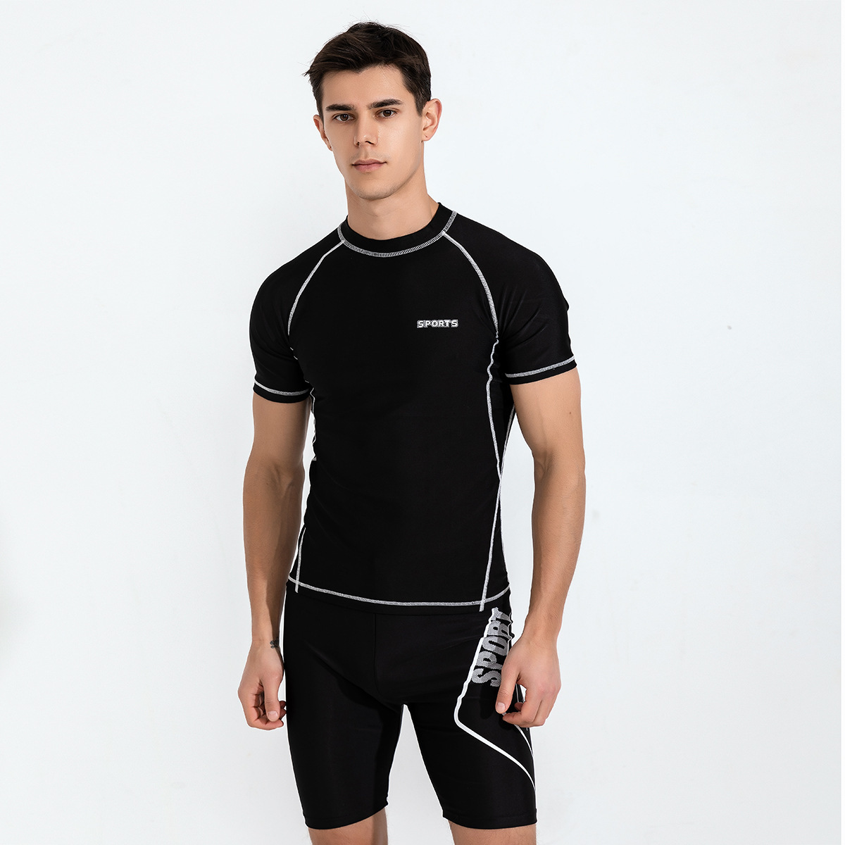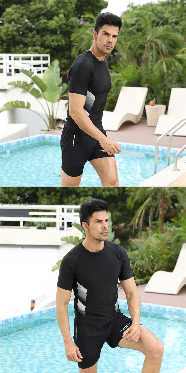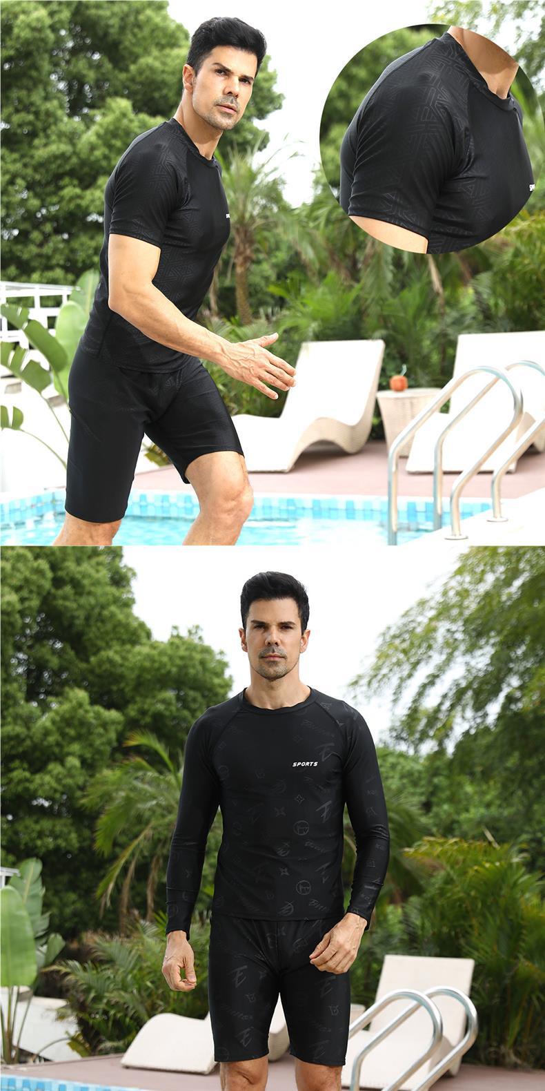 도매 수영복 남성 스플릿 투피스 세트 남자 선스크린 반팔 서핑 스쿠버 세트 플러스 사이즈 비치 남자 수영 트렁크