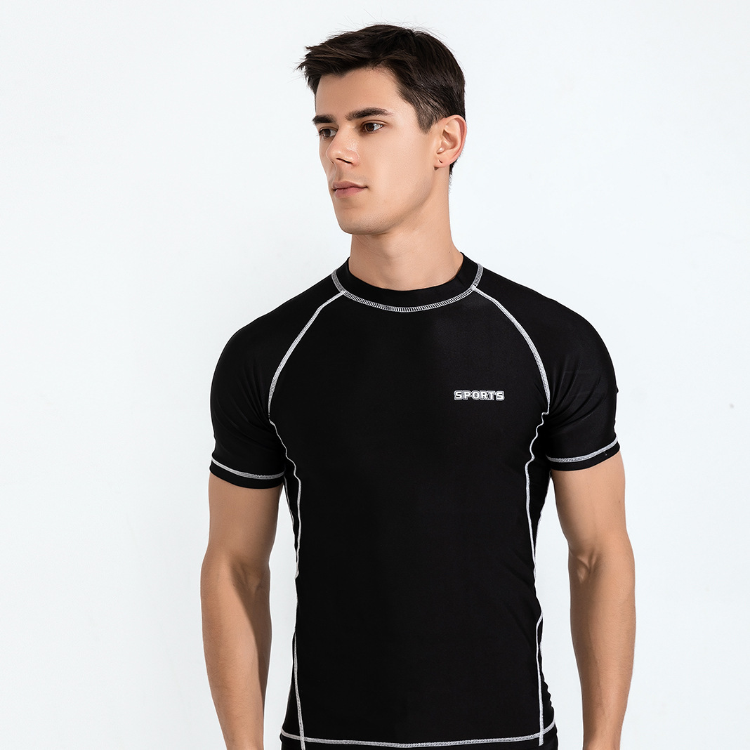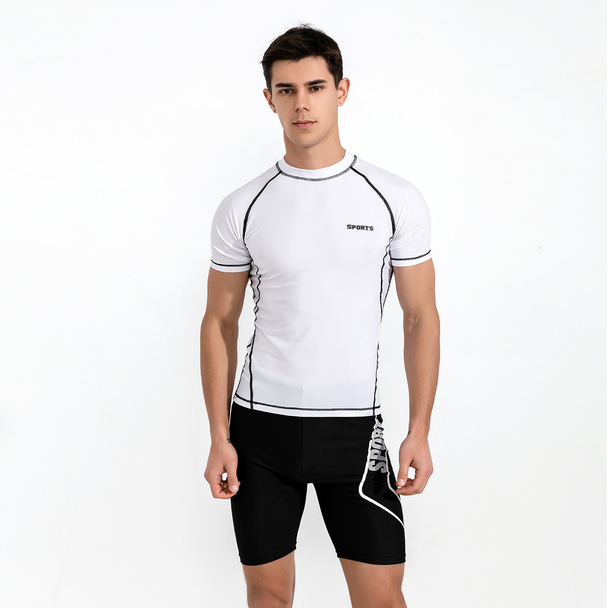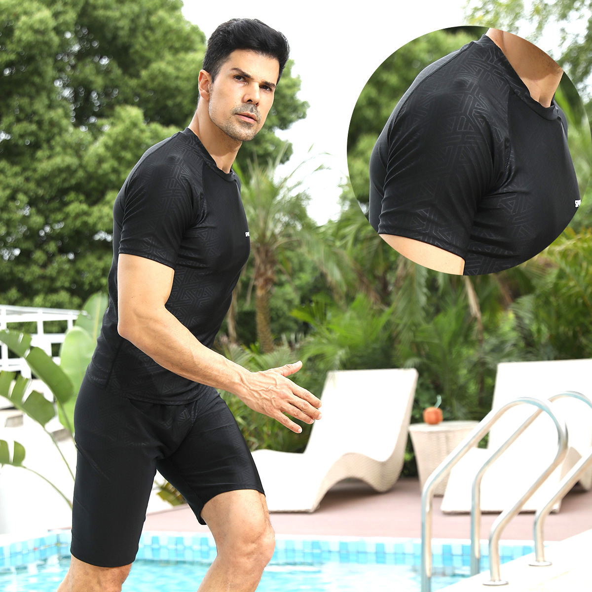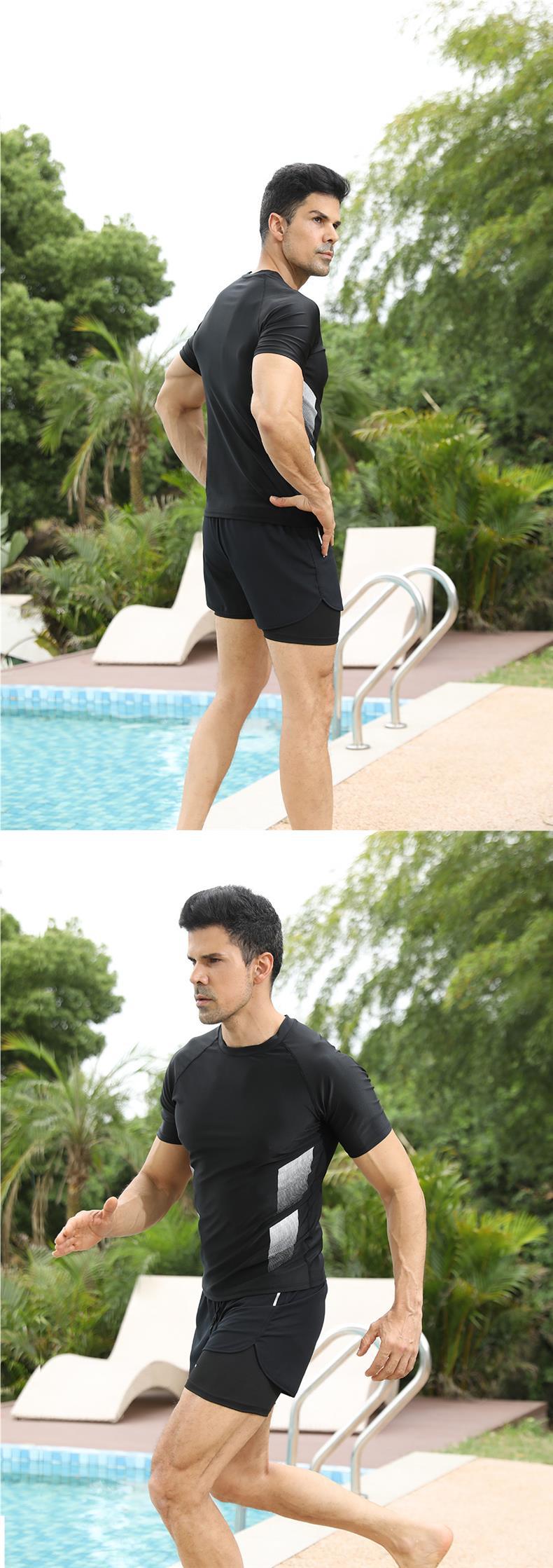 도매 수영복 남성 스플릿 투피스 세트 남자 선스크린 반팔 서핑 스쿠버 세트 플러스 사이즈 비치 남자 수영 트렁크