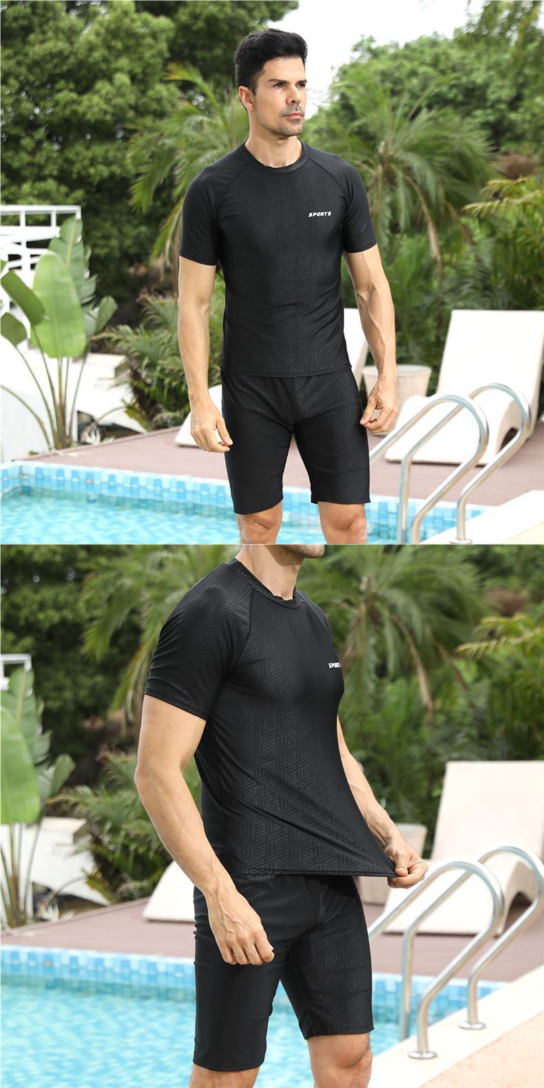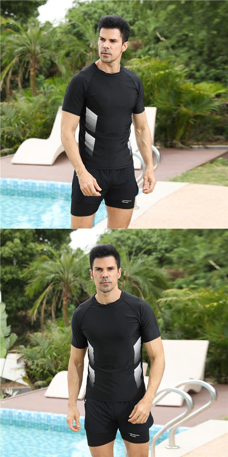 도매 수영복 남성 스플릿 투피스 세트 남자 선스크린 반팔 서핑 스쿠버 세트 플러스 사이즈 비치 남자 수영 트렁크스토어 가기