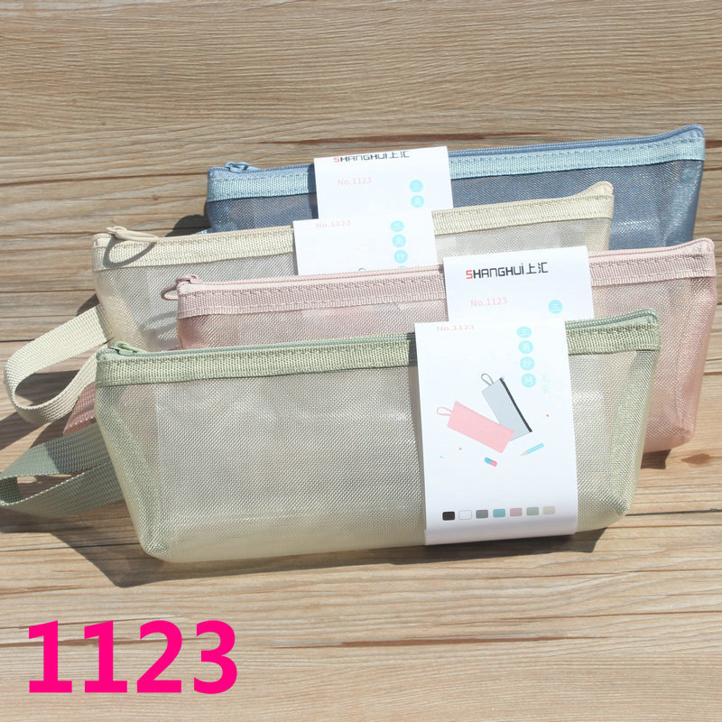 상하이 삼각형 메쉬 투명 지퍼 연필 케이스 Morandi 대용량 저장 가방 학생 연필 케이스 문구 도매스토어 가기