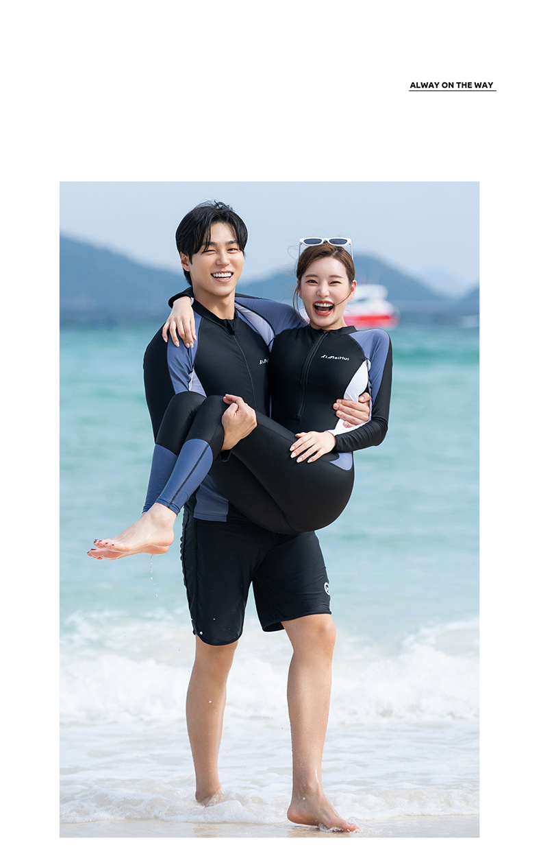 커플 다이빙 세트 여성 원피스 플러스 사이즈 태양 보호 긴팔 보수 해파리 세트 슬리밍 서핑 스노클링 남성 수영복 세트스토어 가기