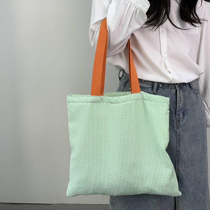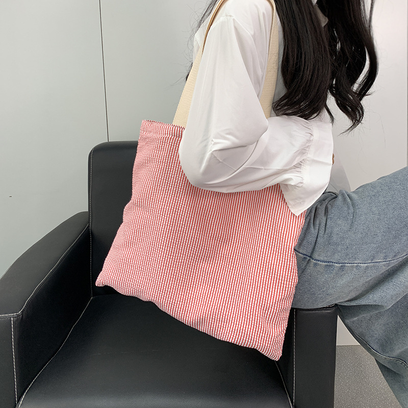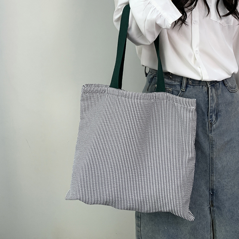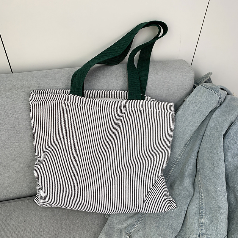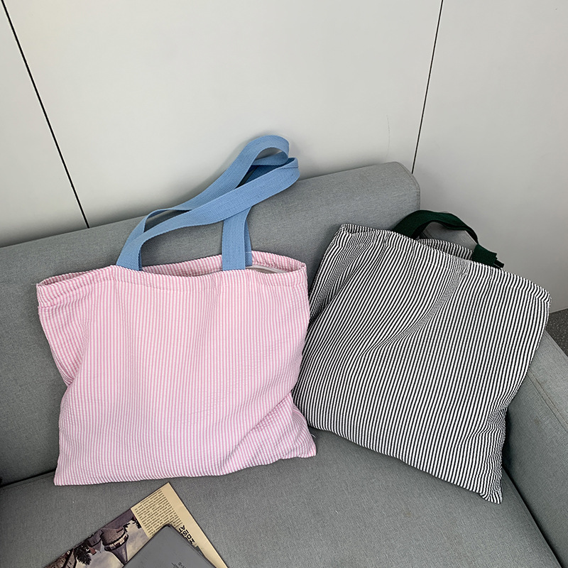 스트라이프 가방, 배색, 심플하고 깔끔한 캔버스 가방, 대용량, 수업 및 출퇴근용 가방, 멋스러운 숄더 토트백스토어 가기
