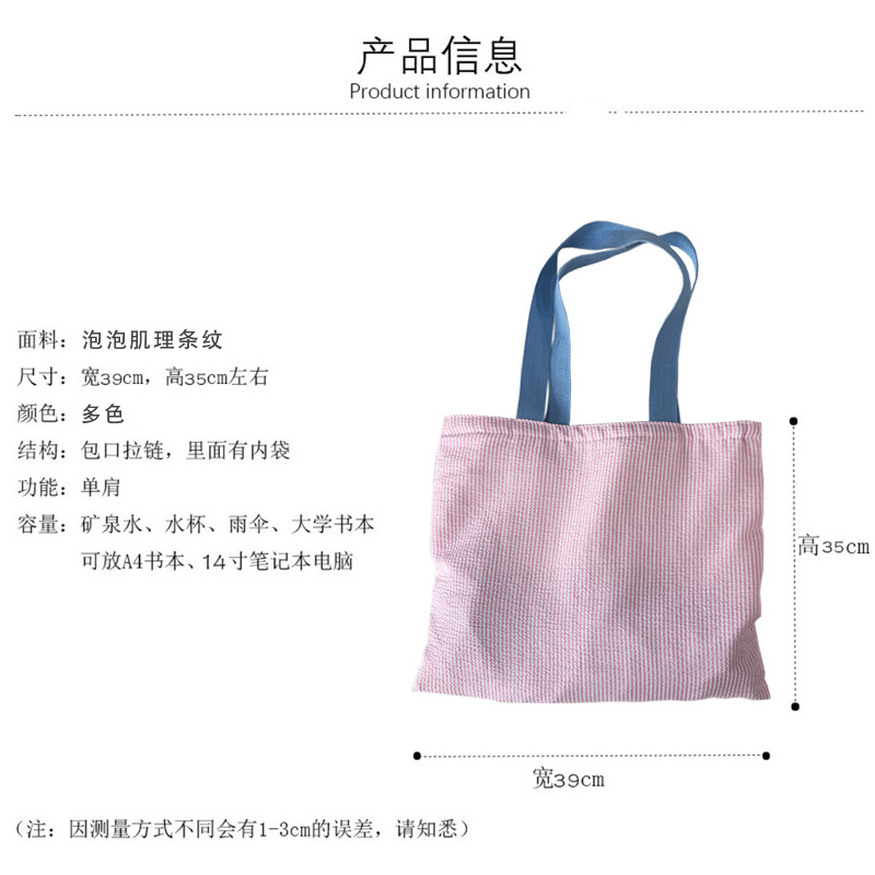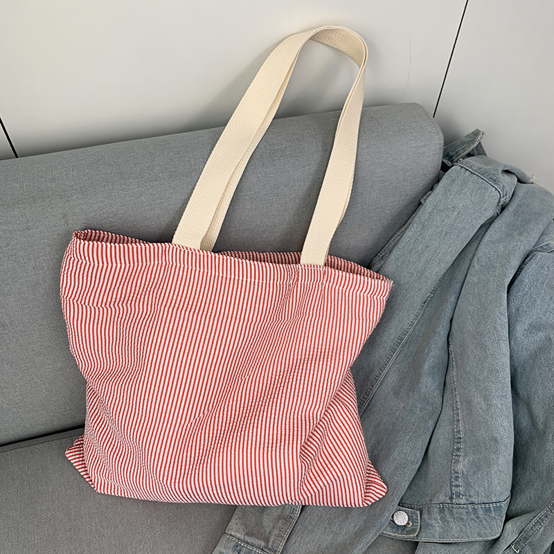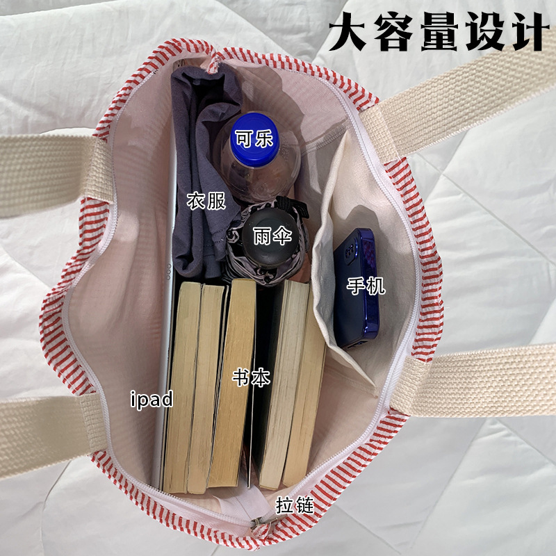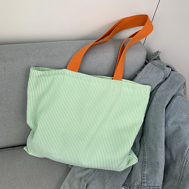 스트라이프 가방, 배색, 심플하고 깔끔한 캔버스 가방, 대용량, 수업 및 출퇴근용 가방, 멋스러운 숄더 토트백