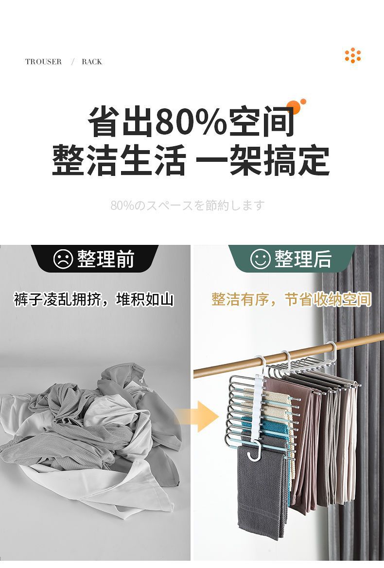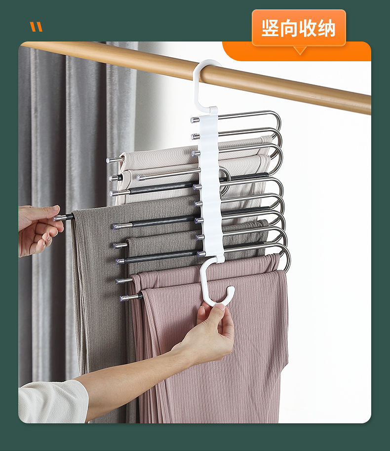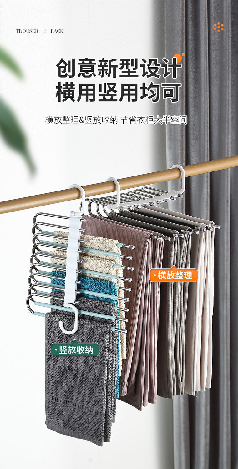 스테인레스 스틸 접이식 바지 클립 다층 텔레스코픽 다기능 스토리지 랙 매직 원활한 바지 랙 바지 걸이