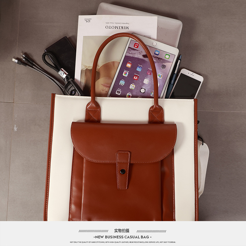 2024 남자 서류 가방 핸드백 가죽 가방 틈새 통근 가방 한국식 크로스 바디 백 싱글 숄더 토트 대형 가방스토어 가기