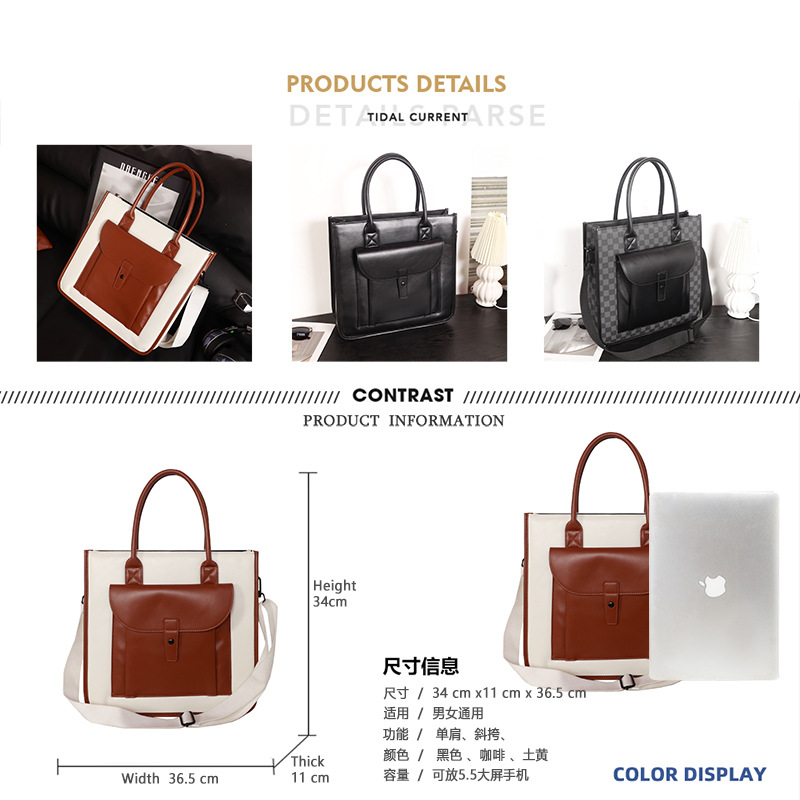 2024 남자 서류 가방 핸드백 가죽 가방 틈새 통근 가방 한국식 크로스 바디 백 싱글 숄더 토트 대형 가방