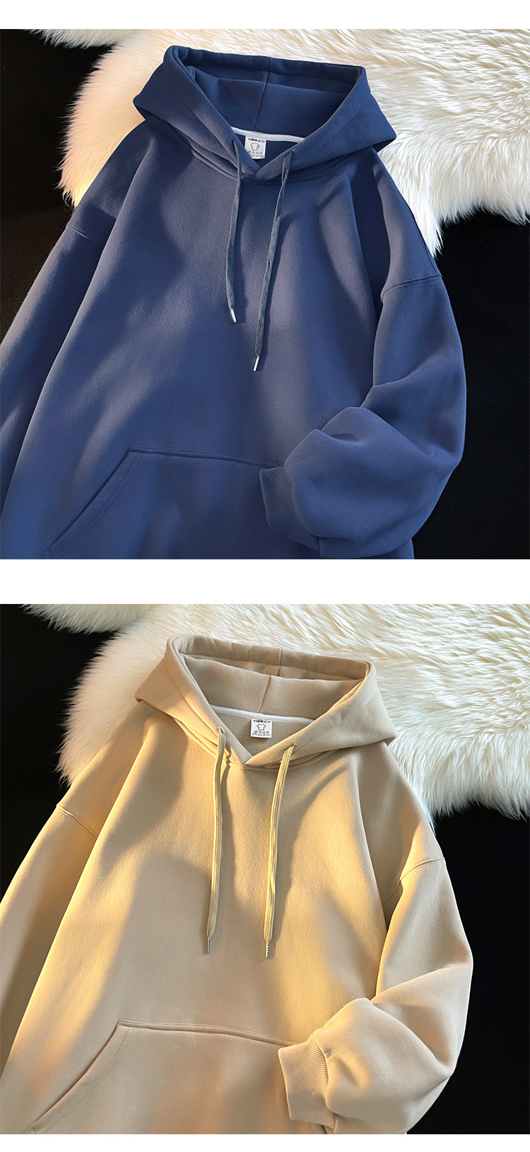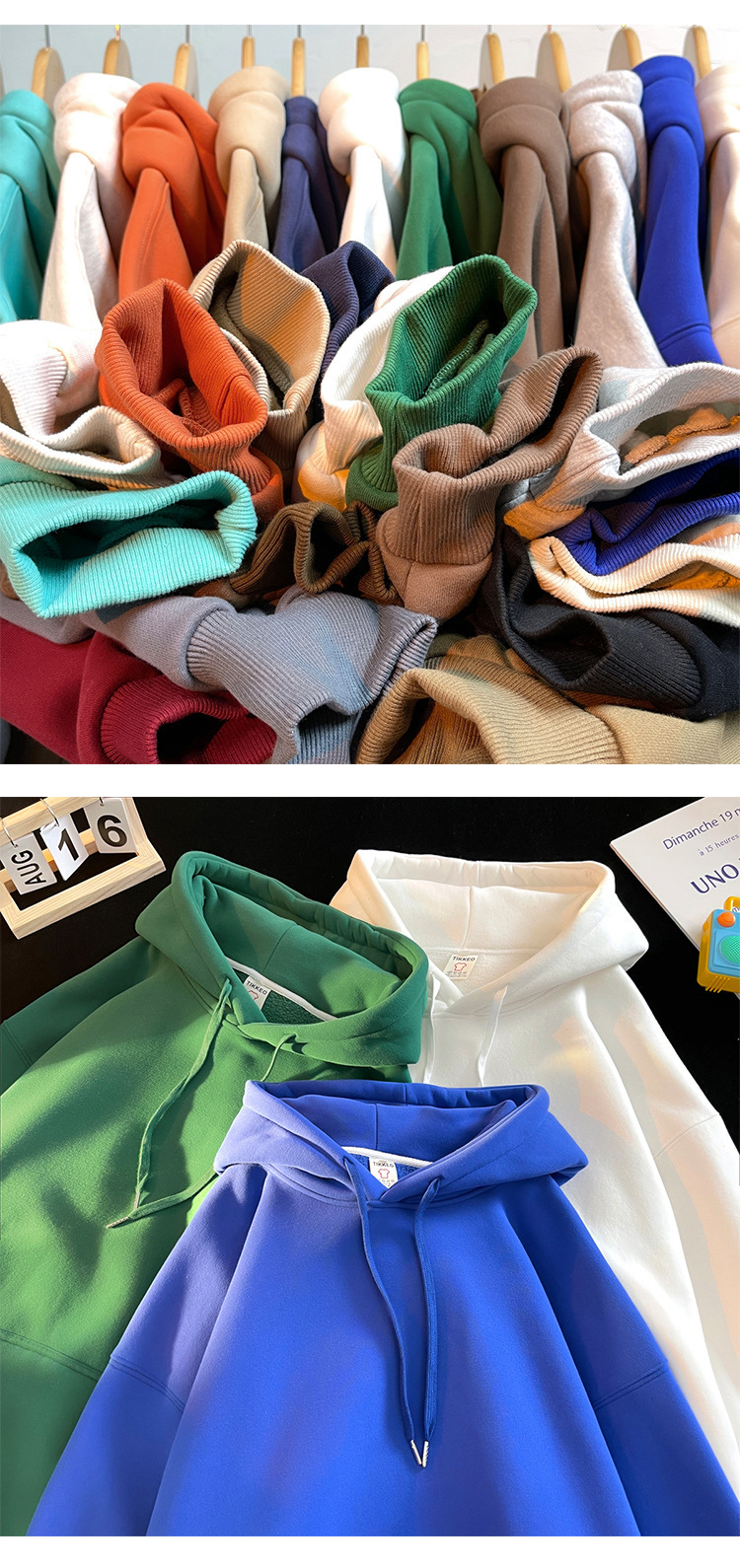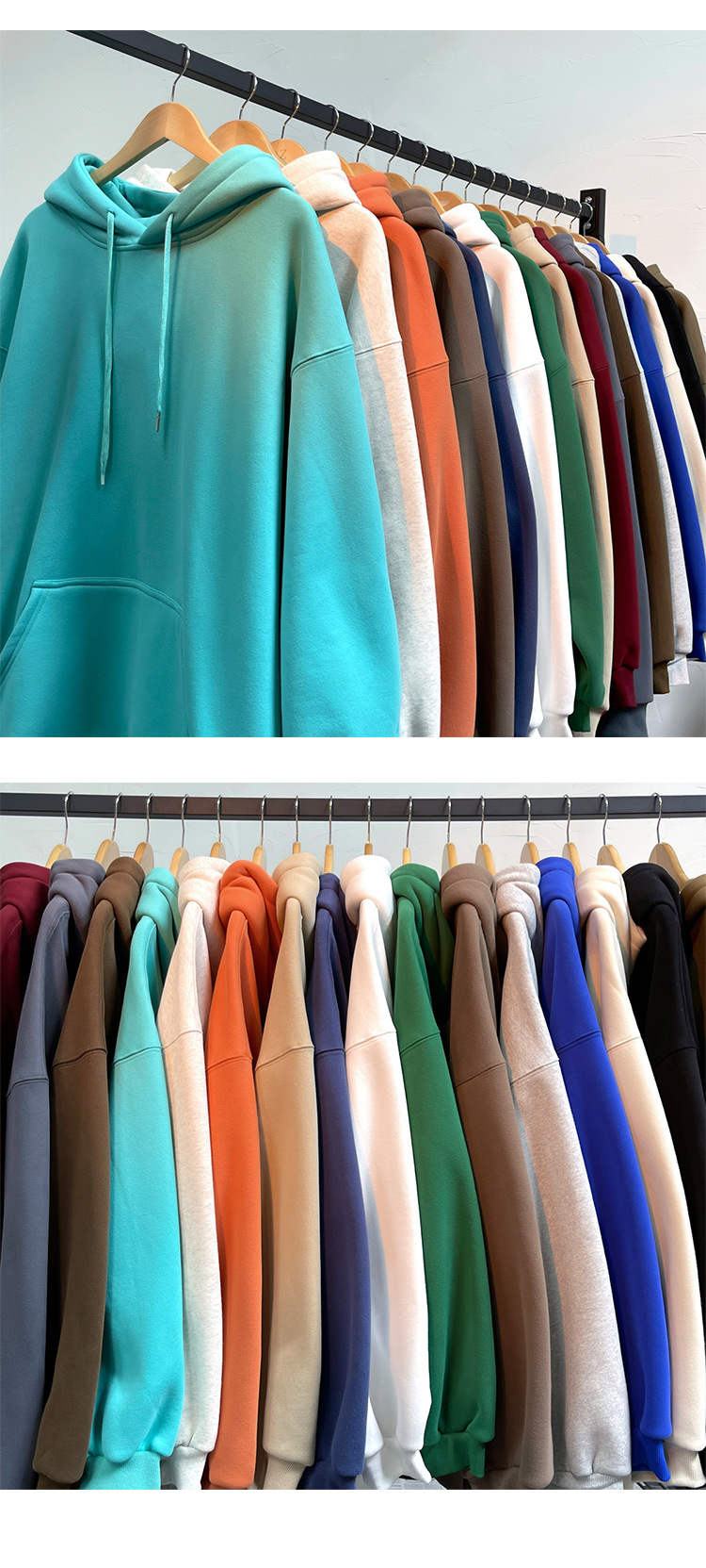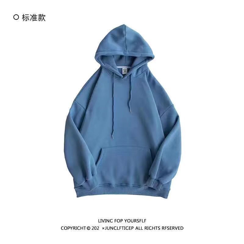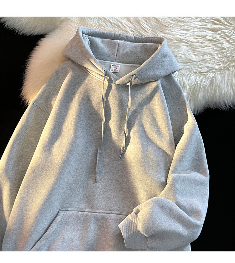 다크 그린 높은 무게 파운드 단색 스웨트 셔츠 남자의 가을과 겨울 단색 기본 기모 오버 사이즈 후드 자켓스토어 가기