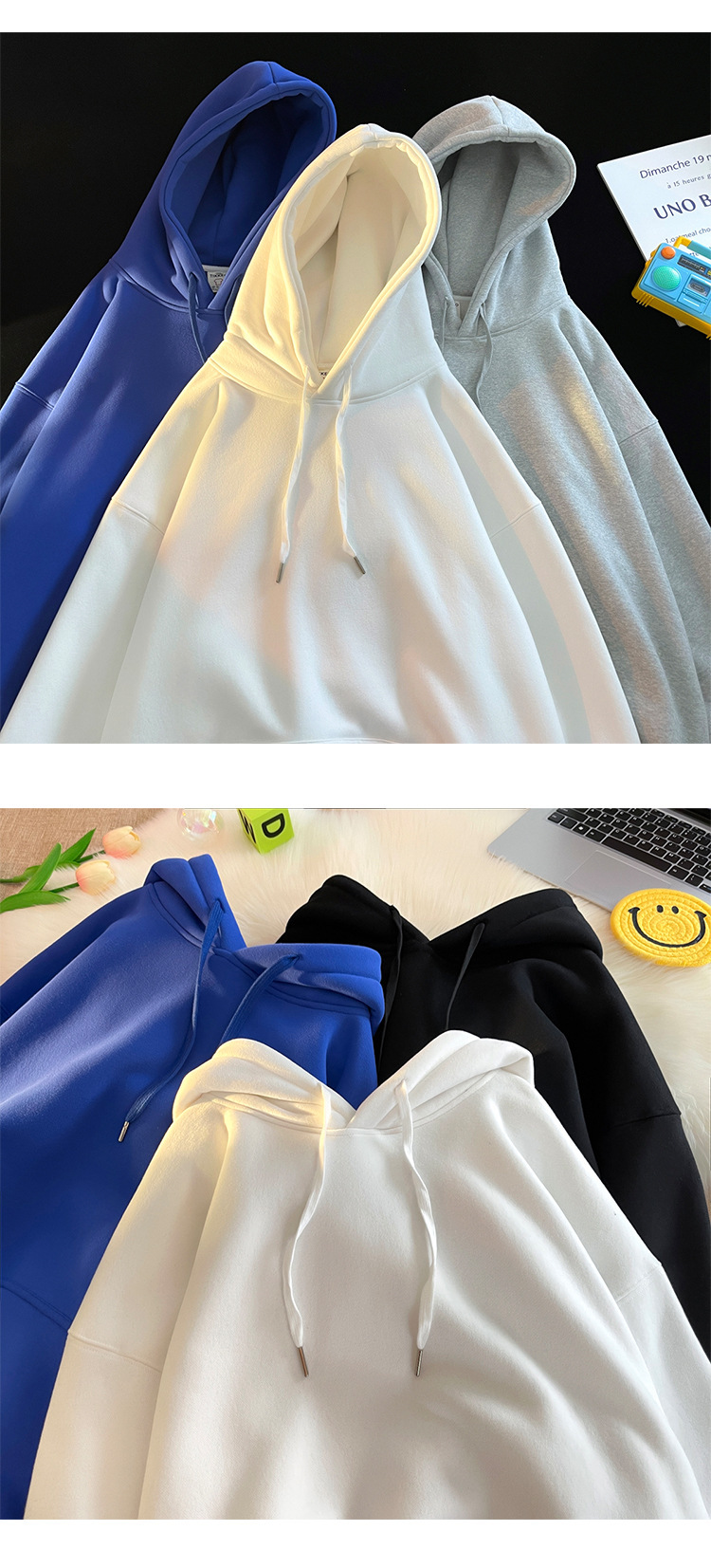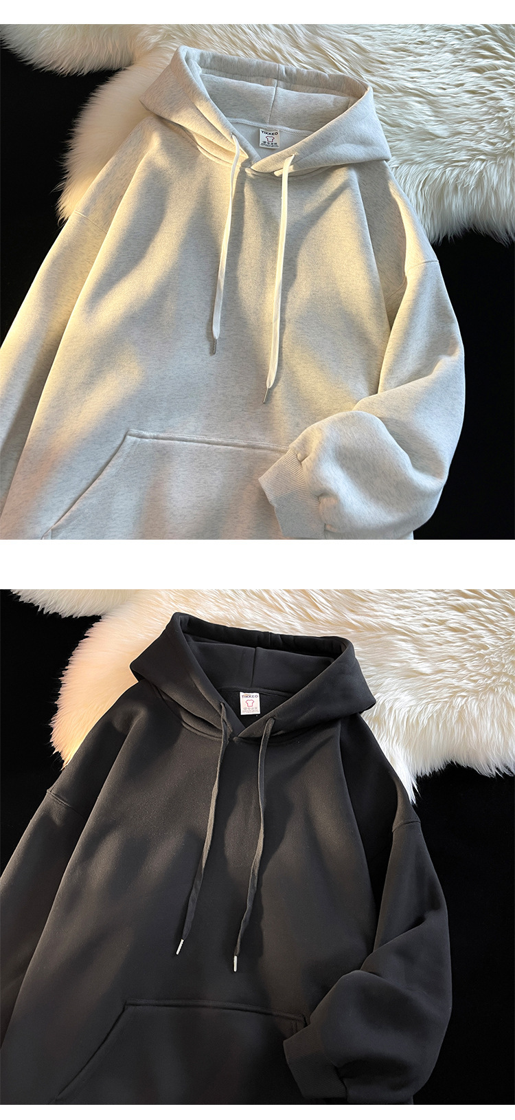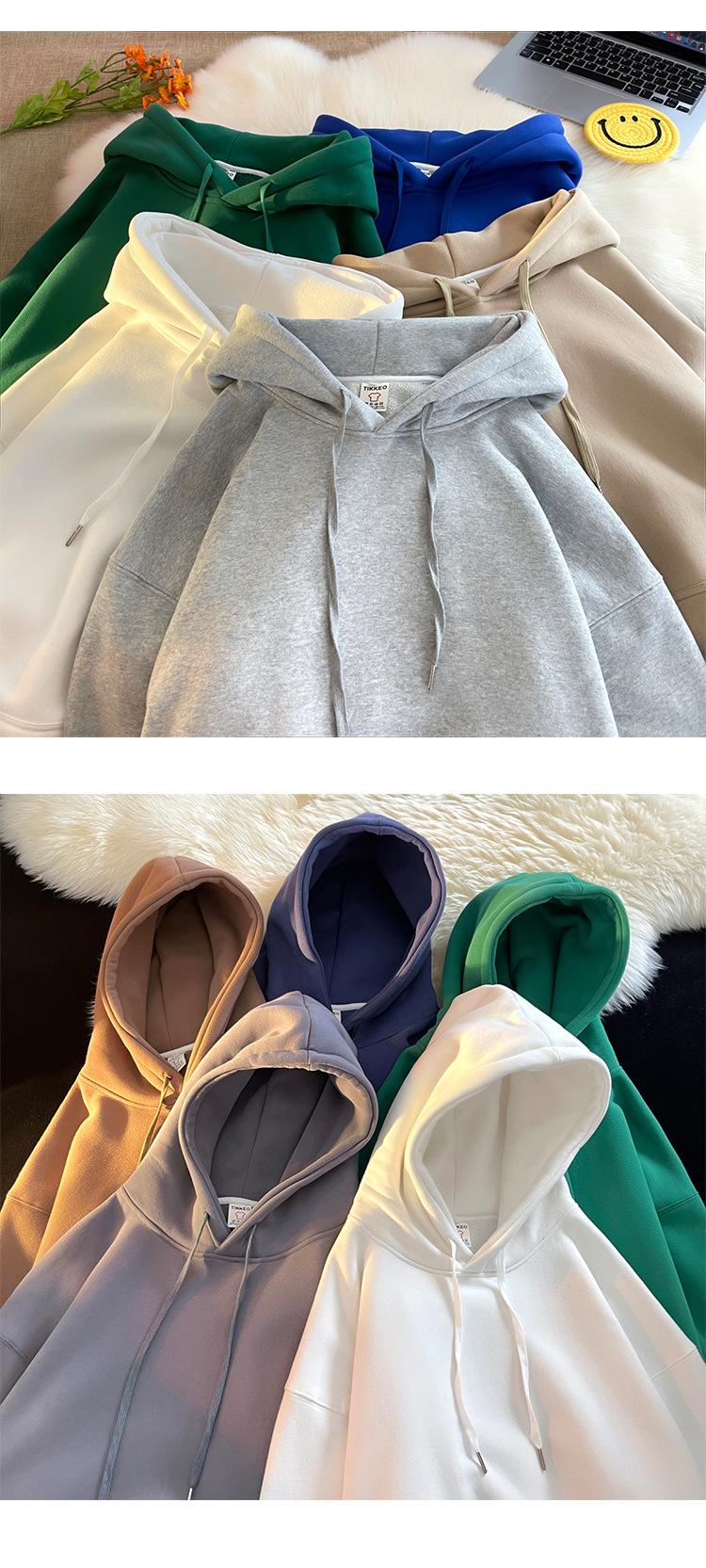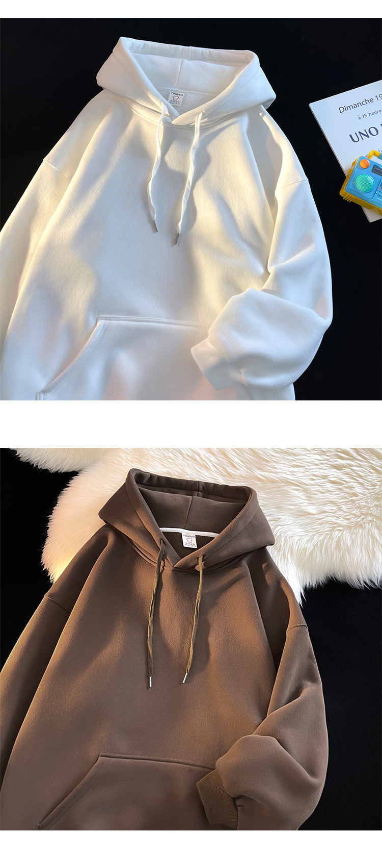 다크 그린 높은 무게 파운드 단색 스웨트 셔츠 남자의 가을과 겨울 단색 기본 기모 오버 사이즈 후드 자켓스토어 가기
