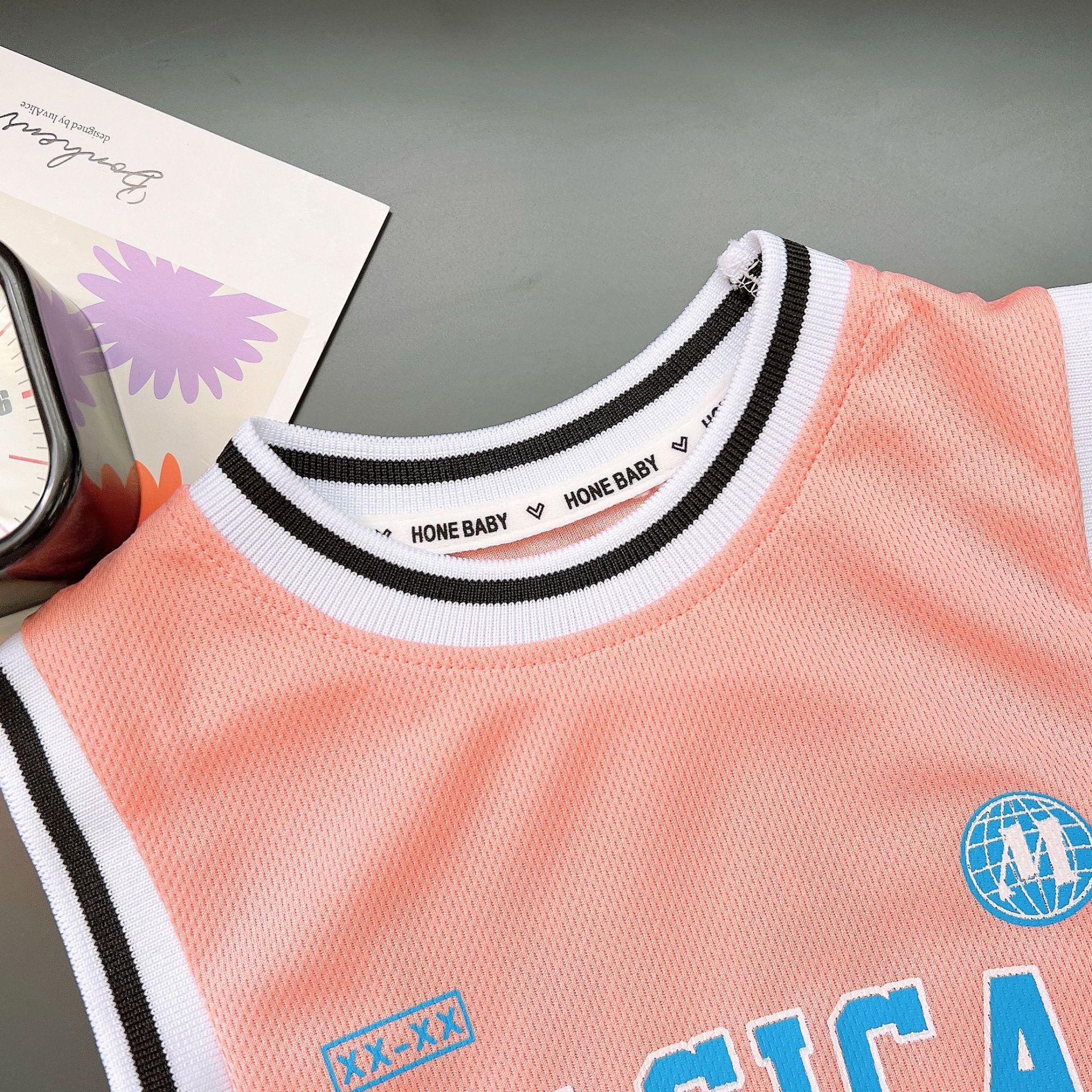 어린이 조끼 볼 옷 세트 여름 아기 멋진 민소매 최고 반바지 2 개 새 눈 통기성 스포츠 세트