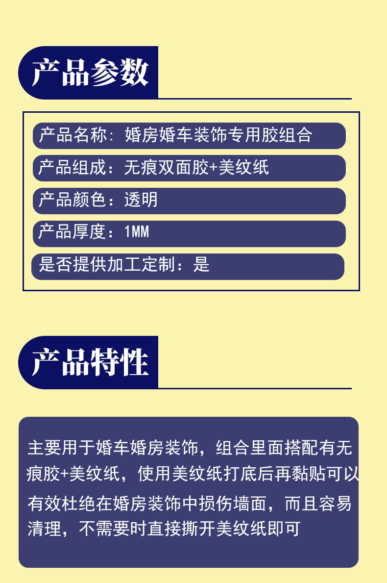 결혼식 차 장식 특별한 원활한 양면 접착 마스킹 종이 백킹은 접착제 조합 공장 직접 판매로 벽을 다치게하지 않습니다스토어 가기