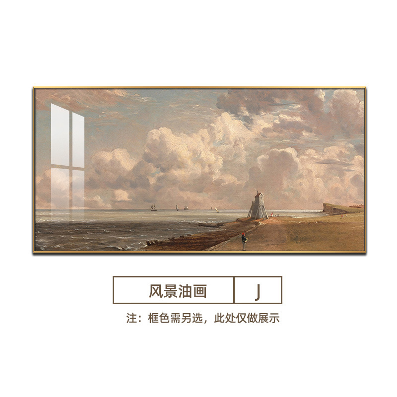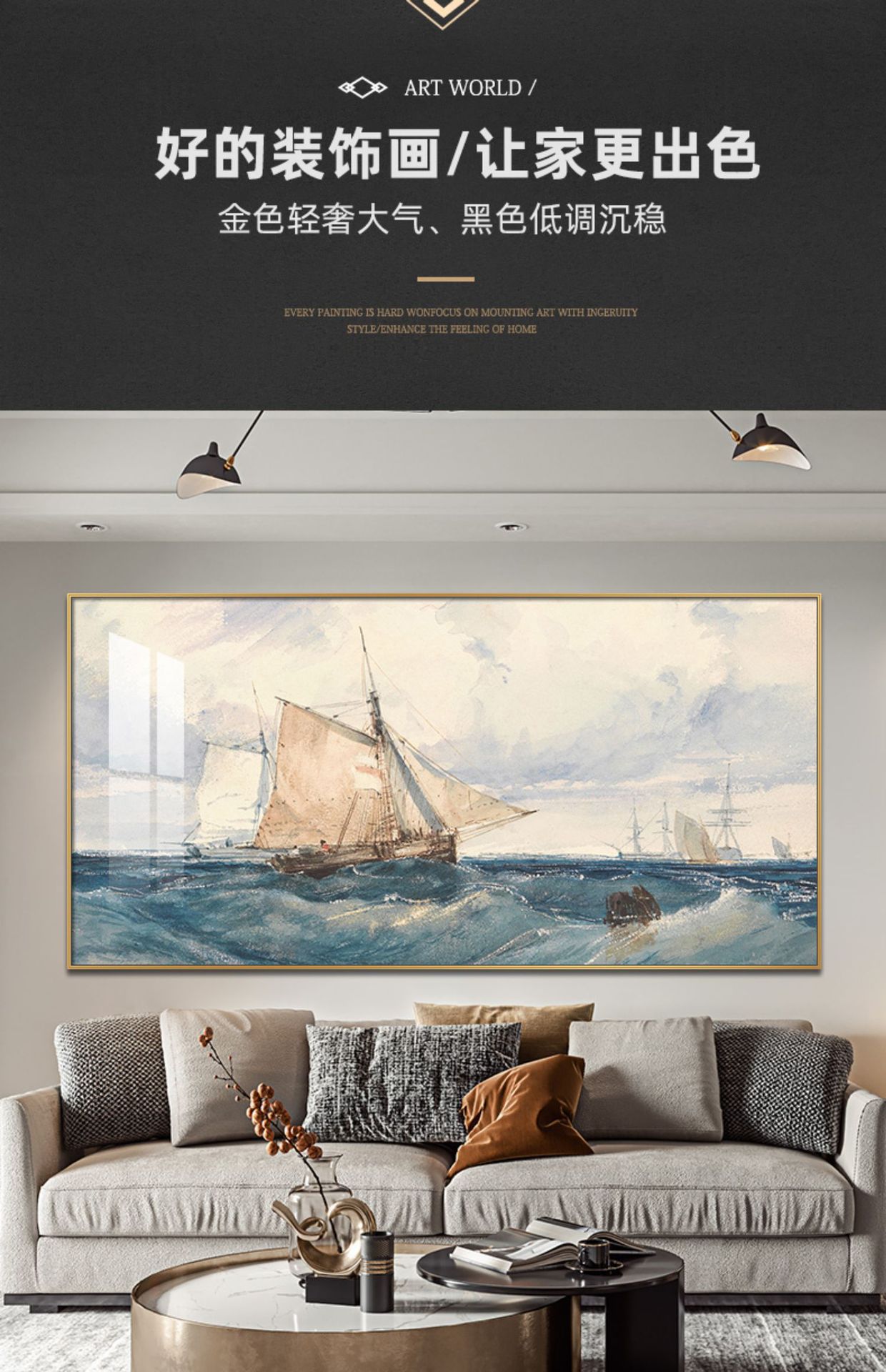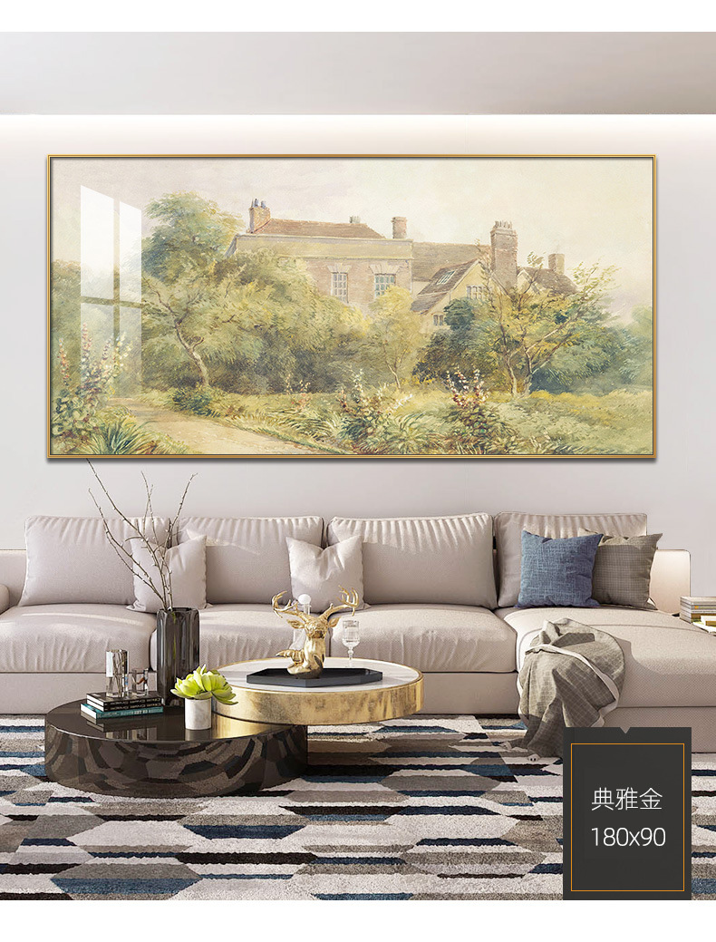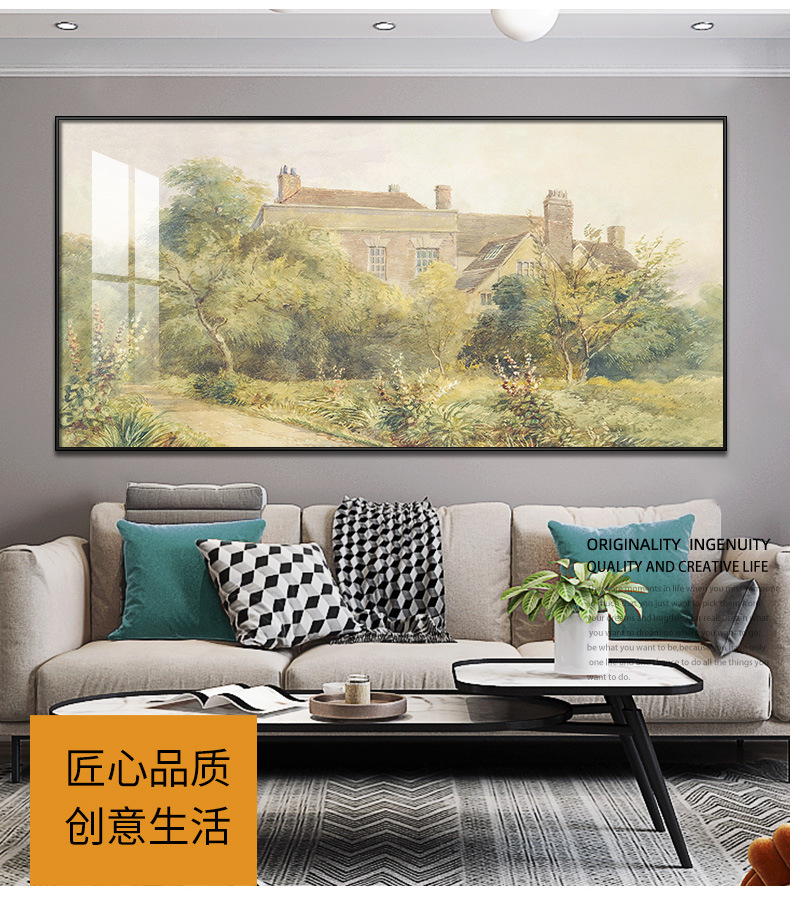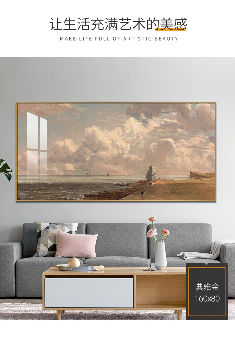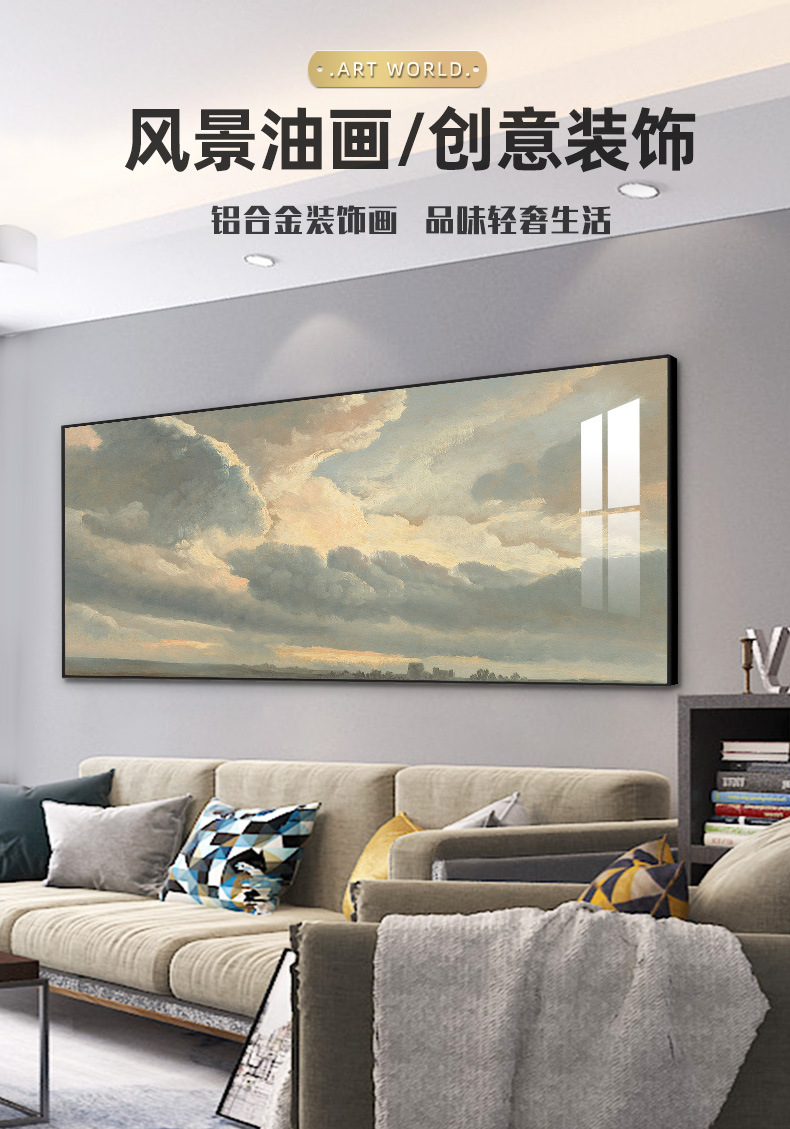 현대 간단한 거실 장식 그림 손으로 그린 유화 소파 배경 벽 매달려 그림 수평판 대기 풍경 벽화