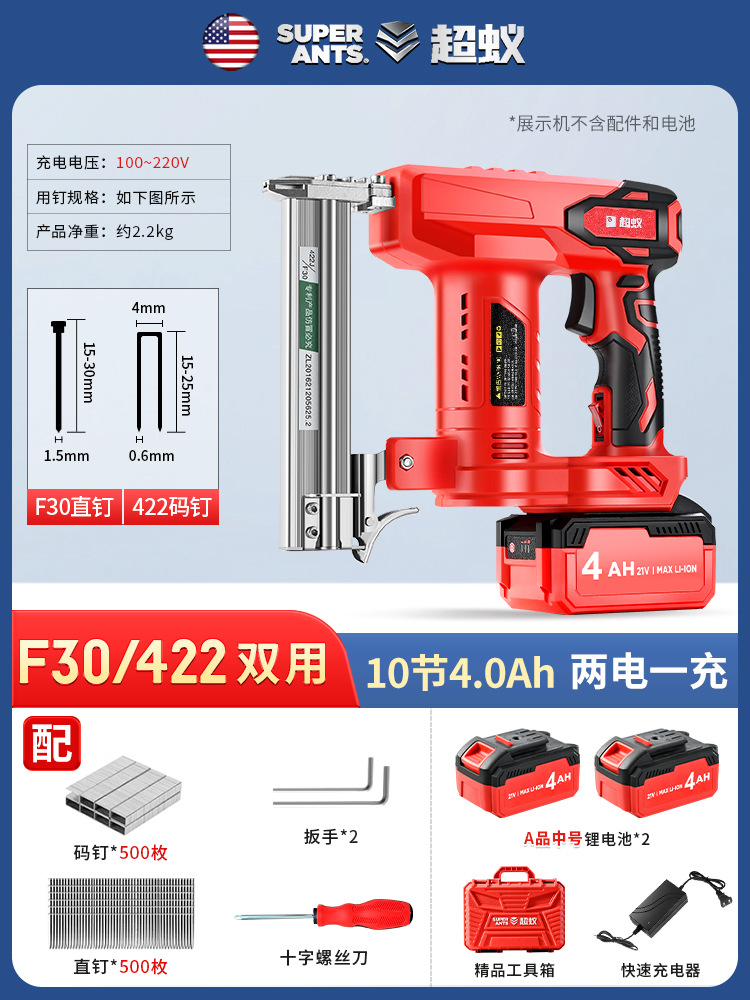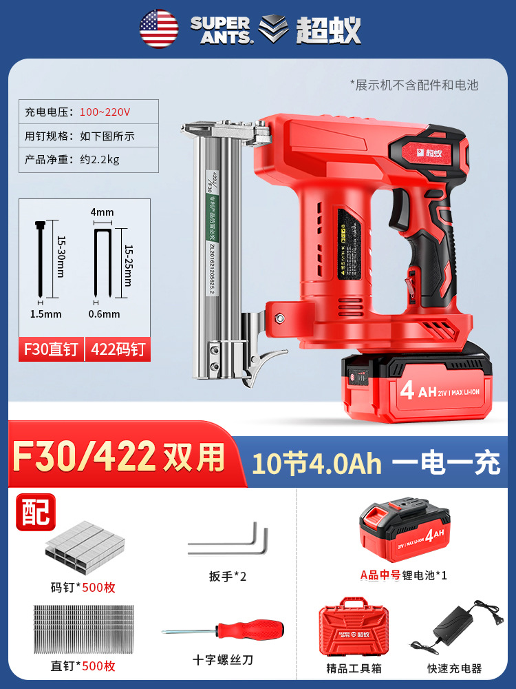 • F30 리튬 배터리 스트레이트 네일건 [10섹션 4.0Ah] 배터리 1개 [일회용]