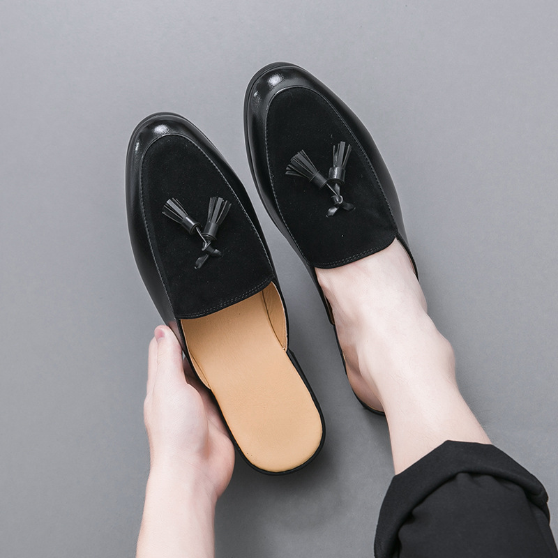 피팅 룸 발가락 포장 가죽 신발 수술실 드라이버 반 드래그 가죽 신발 남성용 신발 절반 지원 게으른 신발 샌들스토어 가기