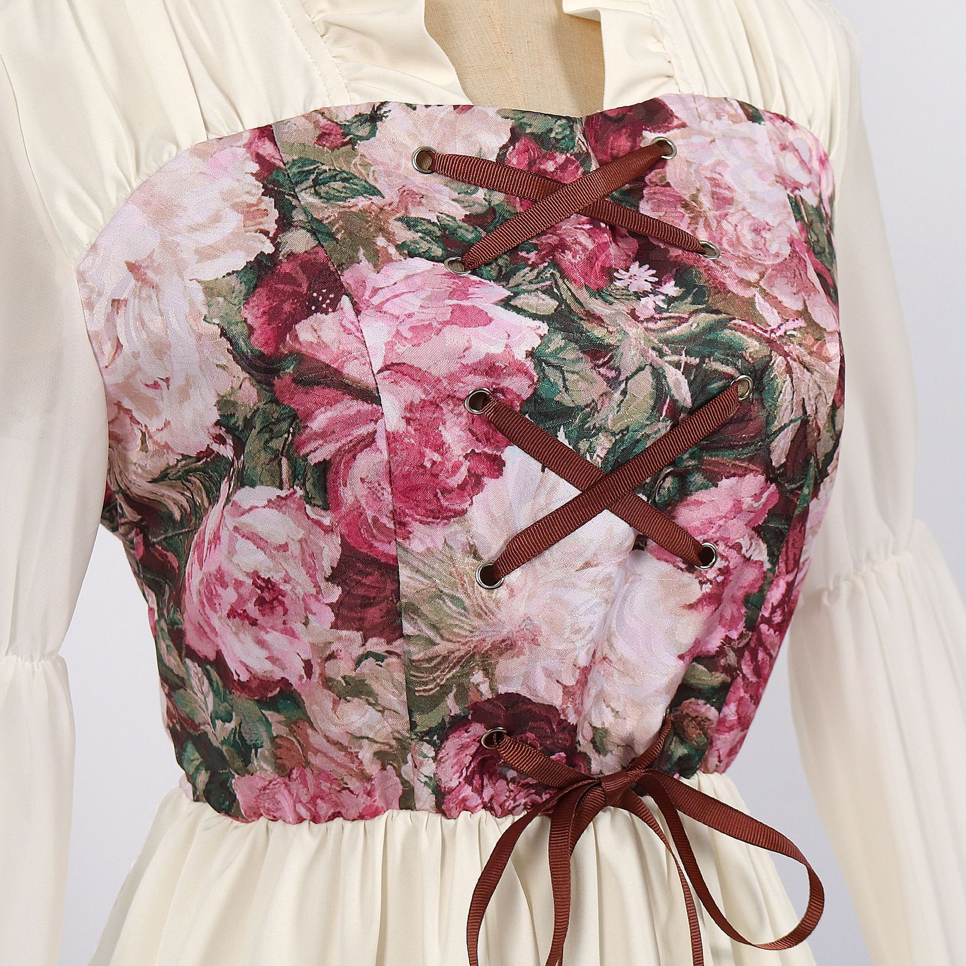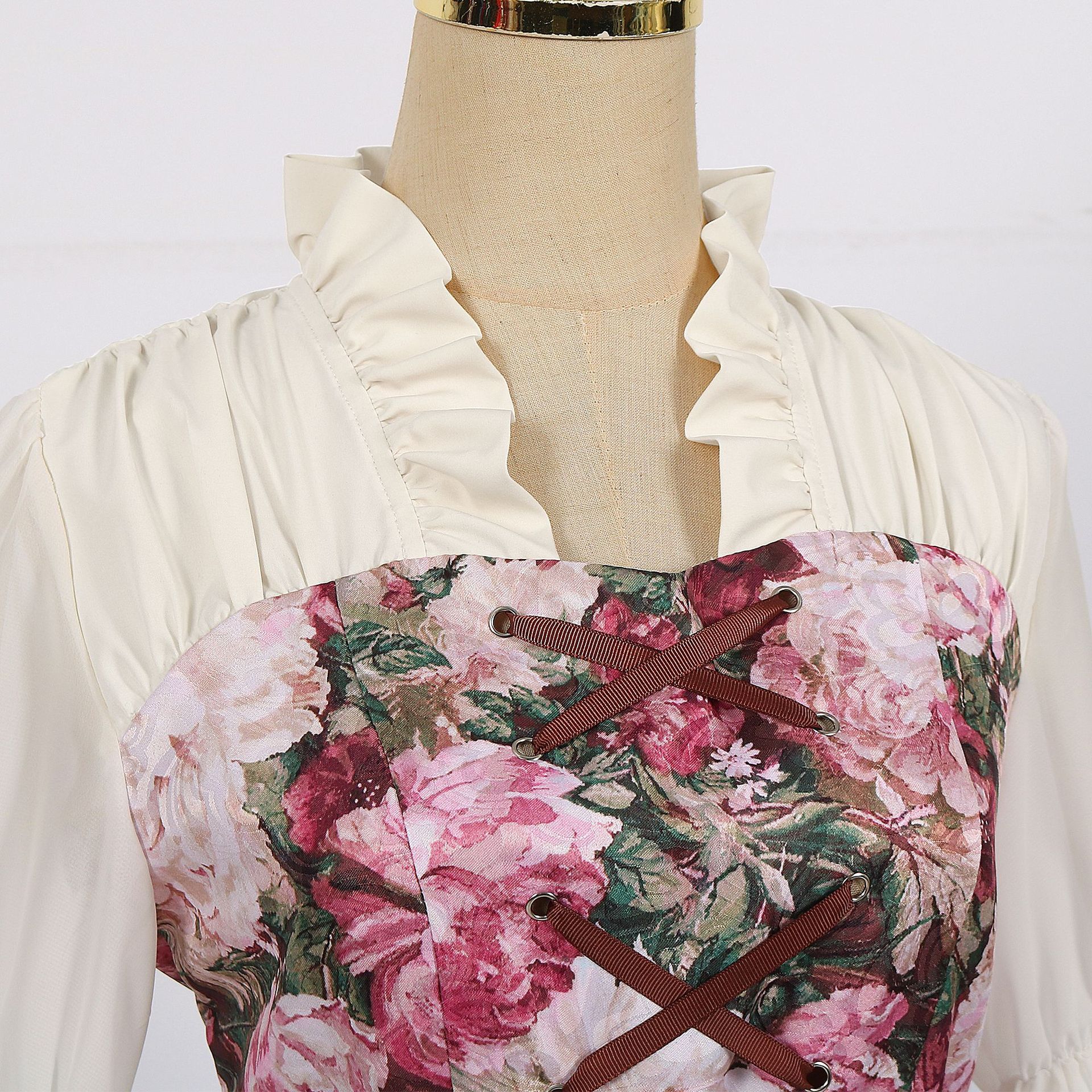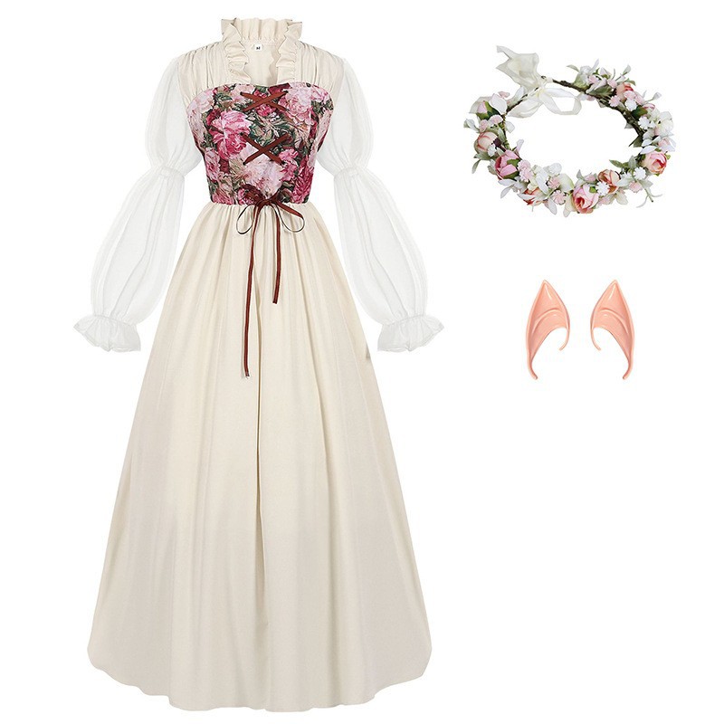 • 궁전 허리 스커트 살구 + 화환 + 엘프 귀