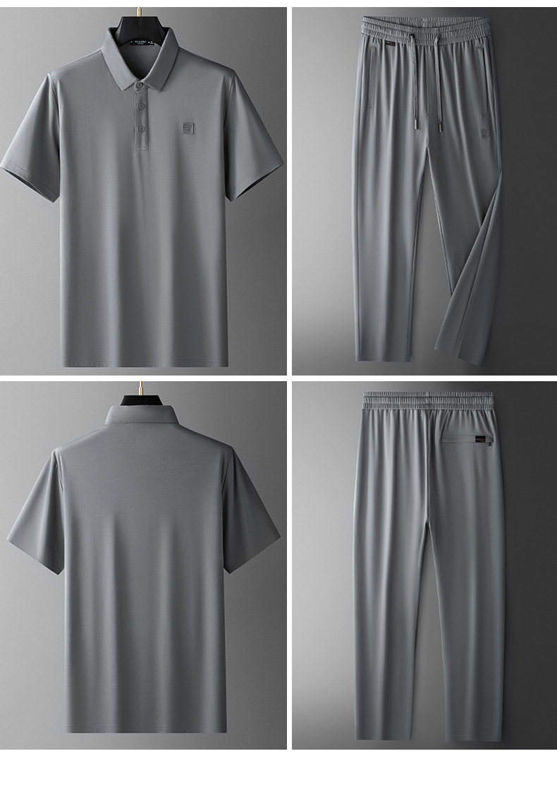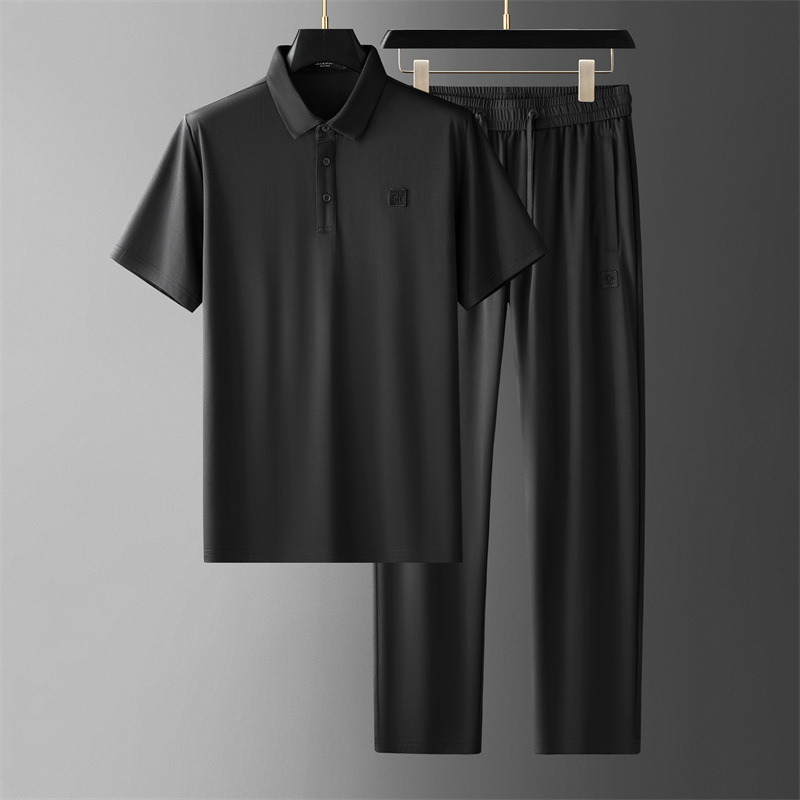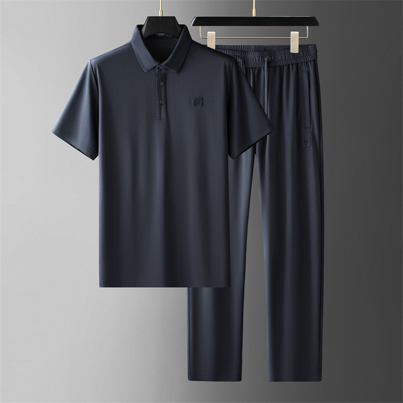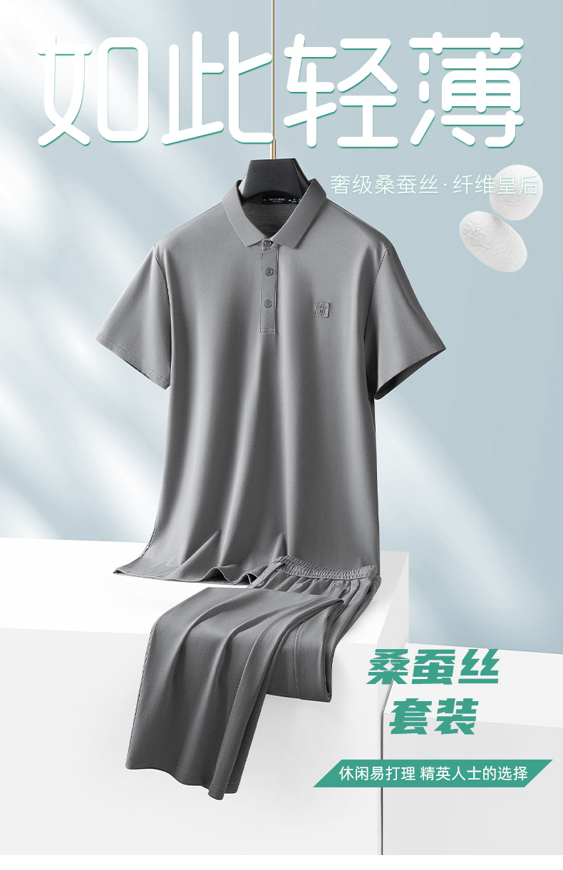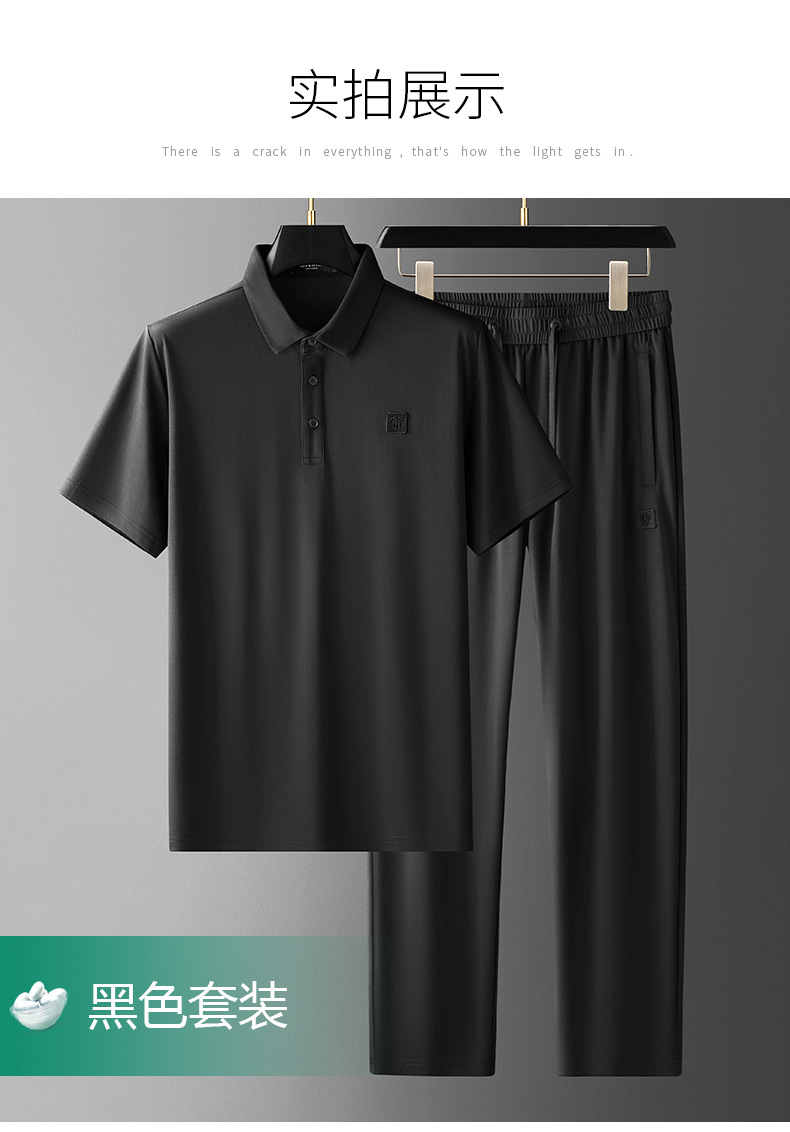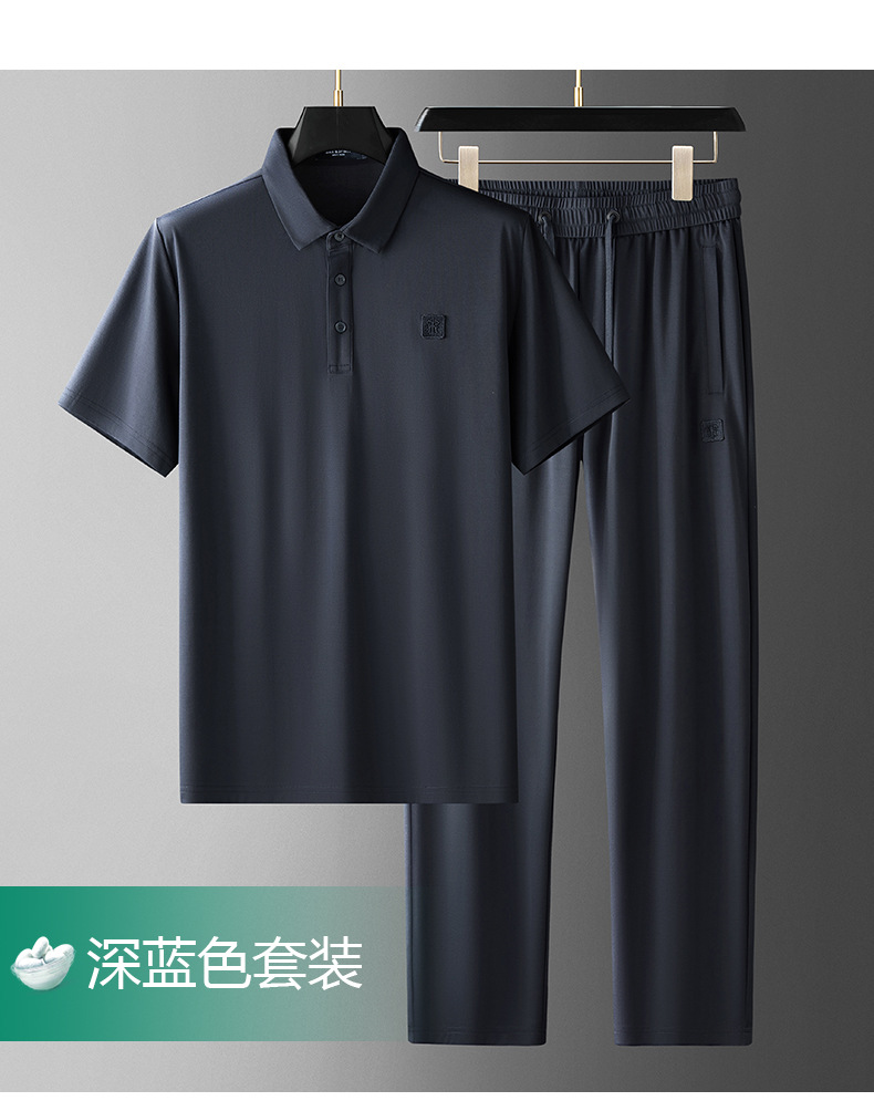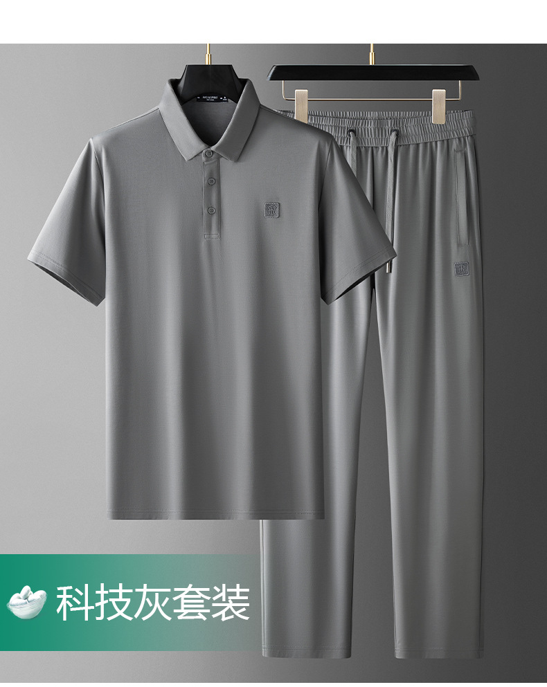 2024 년 여름 새로운 뽕나무 실크 아이스 느낌 중년 남성 투피스 피부 친화적 인 통기성 느슨한 캐주얼 스포츠 세트