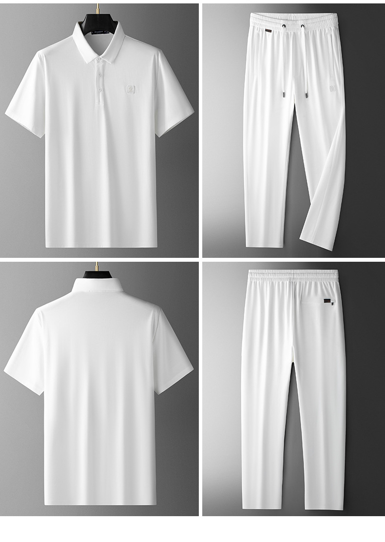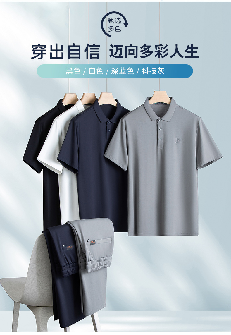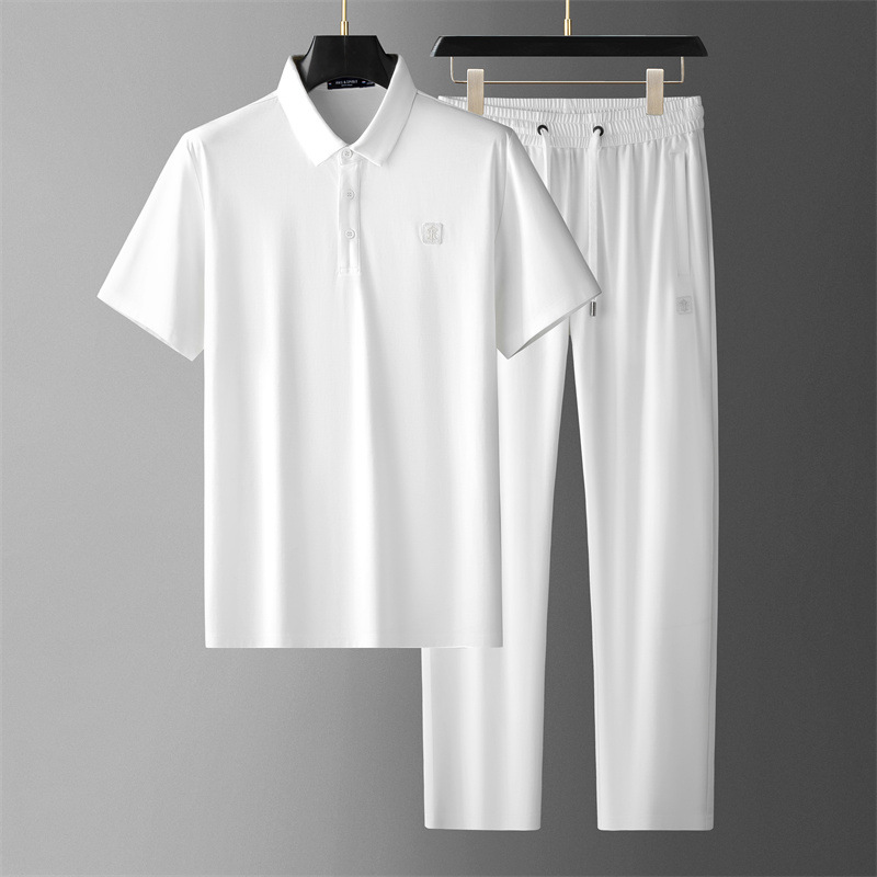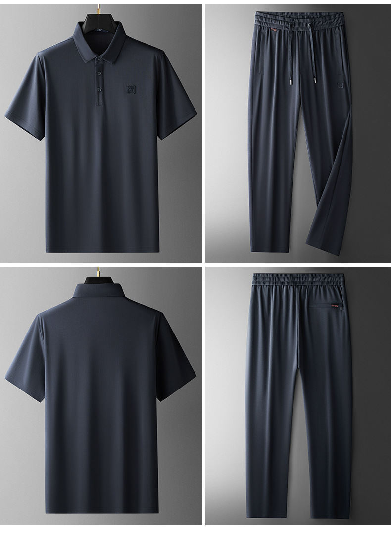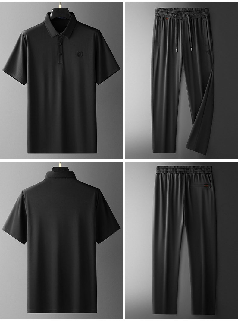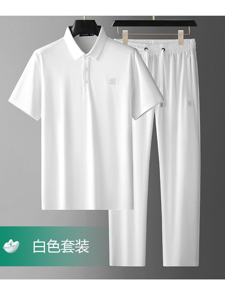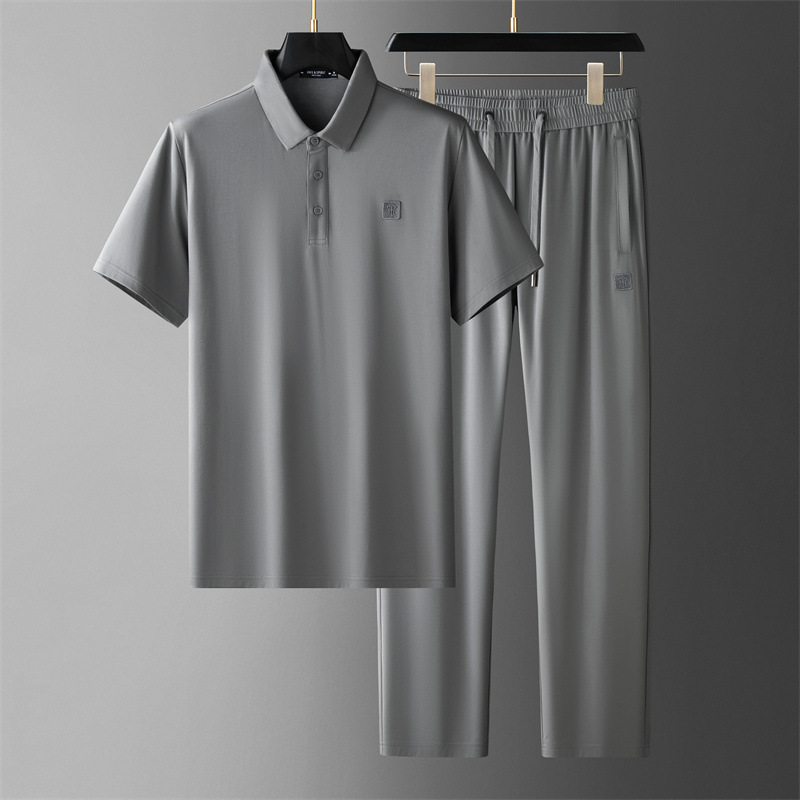 2024 년 여름 새로운 뽕나무 실크 아이스 느낌 중년 남성 투피스 피부 친화적 인 통기성 느슨한 캐주얼 스포츠 세트