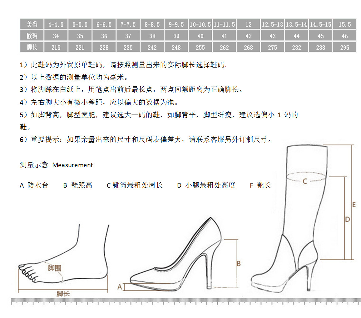 本店女鞋均为出口欧美,尺码偏大,具体请参照本店尺码表选择合适的鞋子。