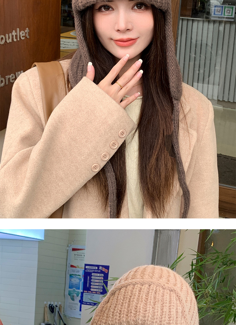 단색 따뜻한 귀 보호 니트 모자 여성용 가을 겨울 스트랩 울 모자 한국 패션 두꺼운 플라잉 레이 펑 모자스토어 가기