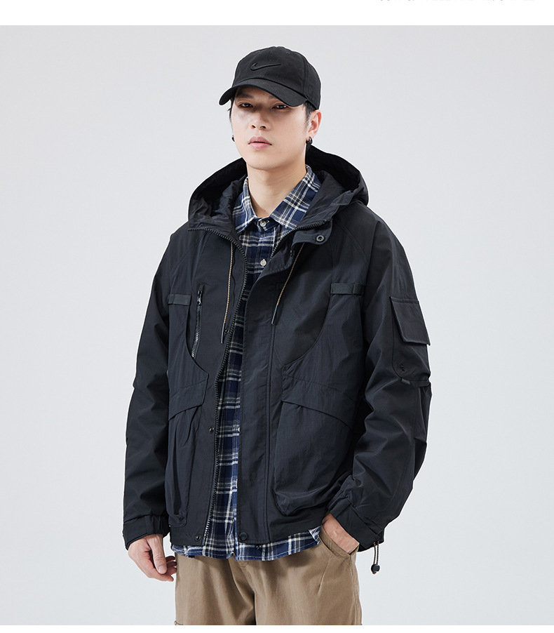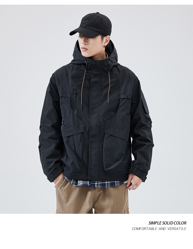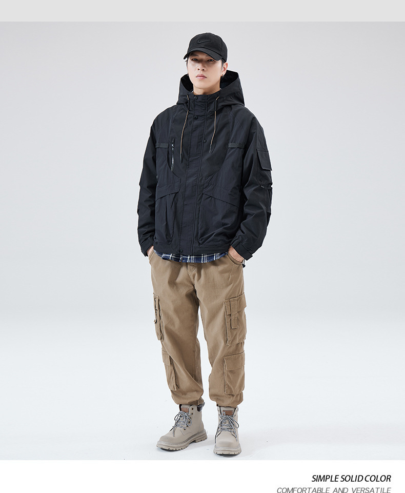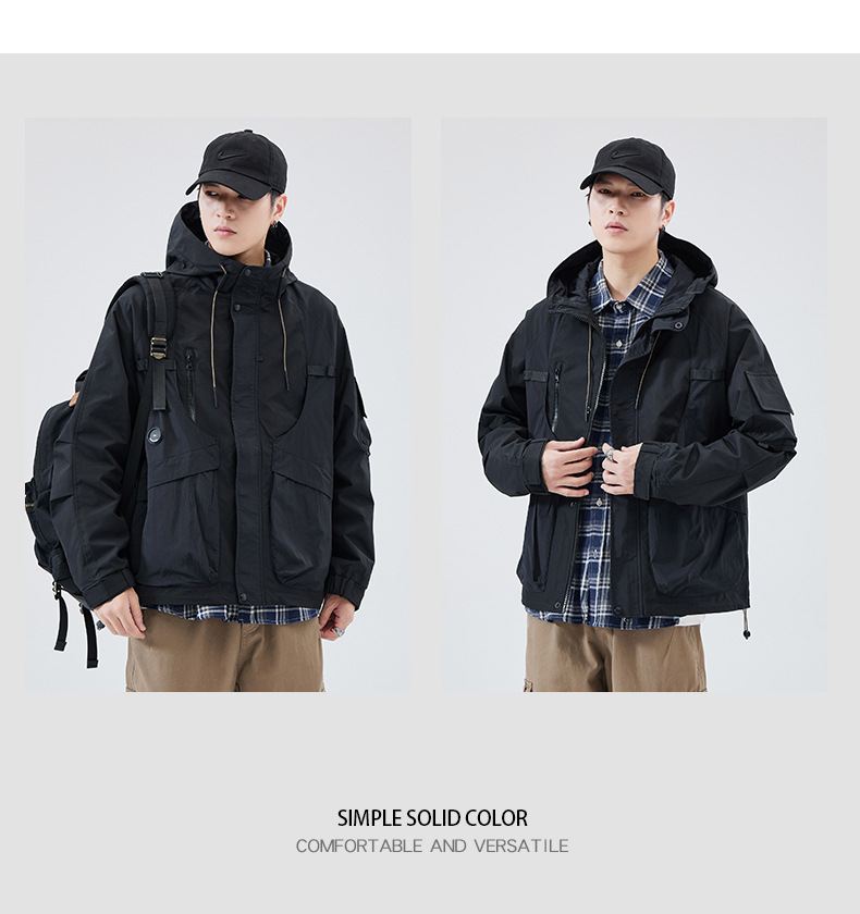 E980E2户外山系防风防水机能冲锋衣男款潮牌美式宽松登山工装外套