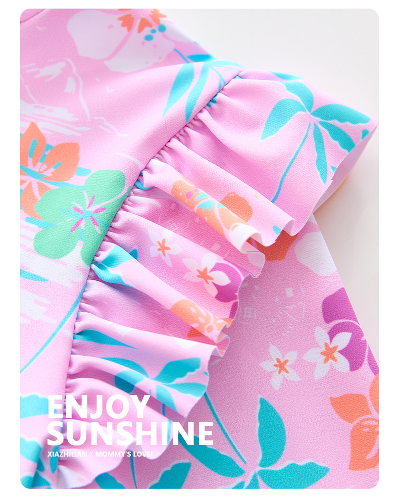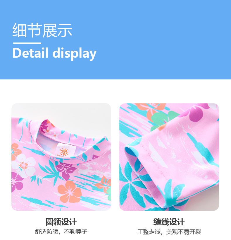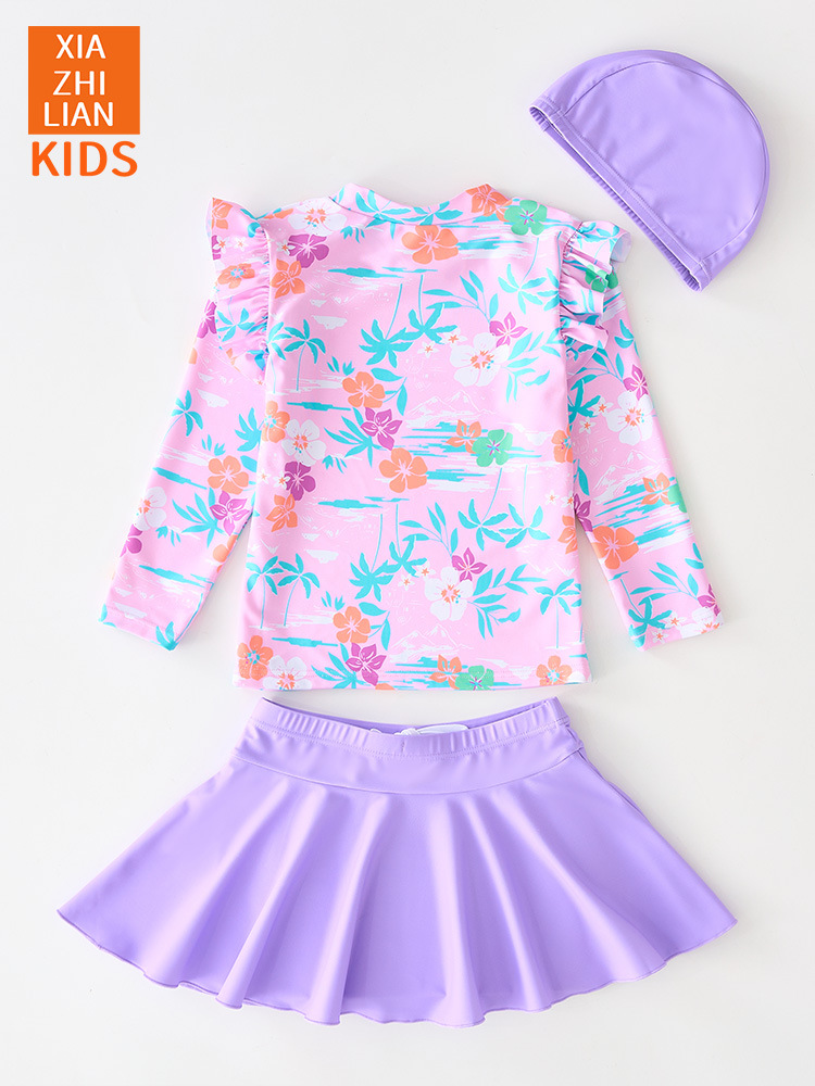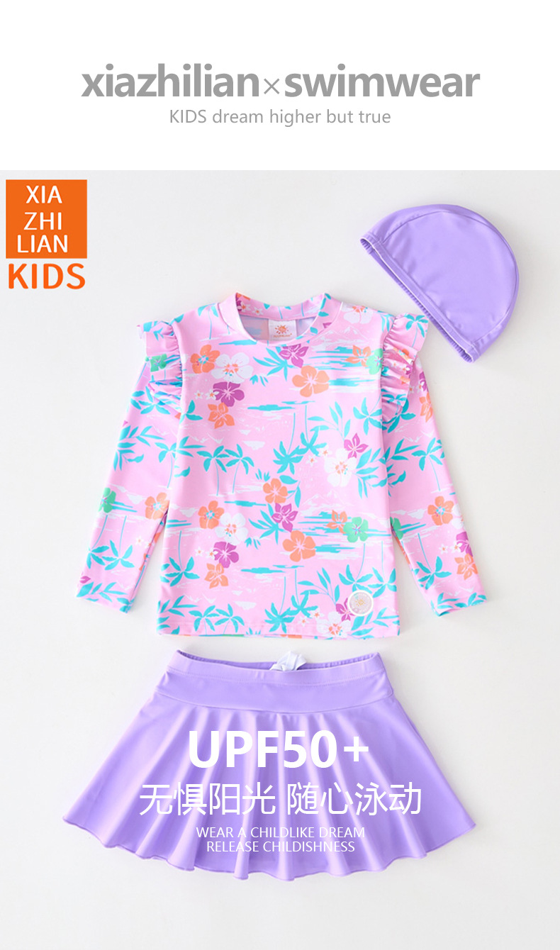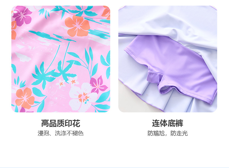 韩国韩范儿童泳衣女童长袖分体防晒速干游泳衣女孩海边沙滩冲浪服