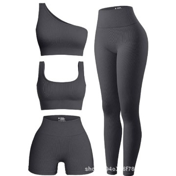 요가 의류 여성의 2024 새로운 반팔 스포츠 피트니스 필라테 훈련 의류 최고 고급 4 피스 세트