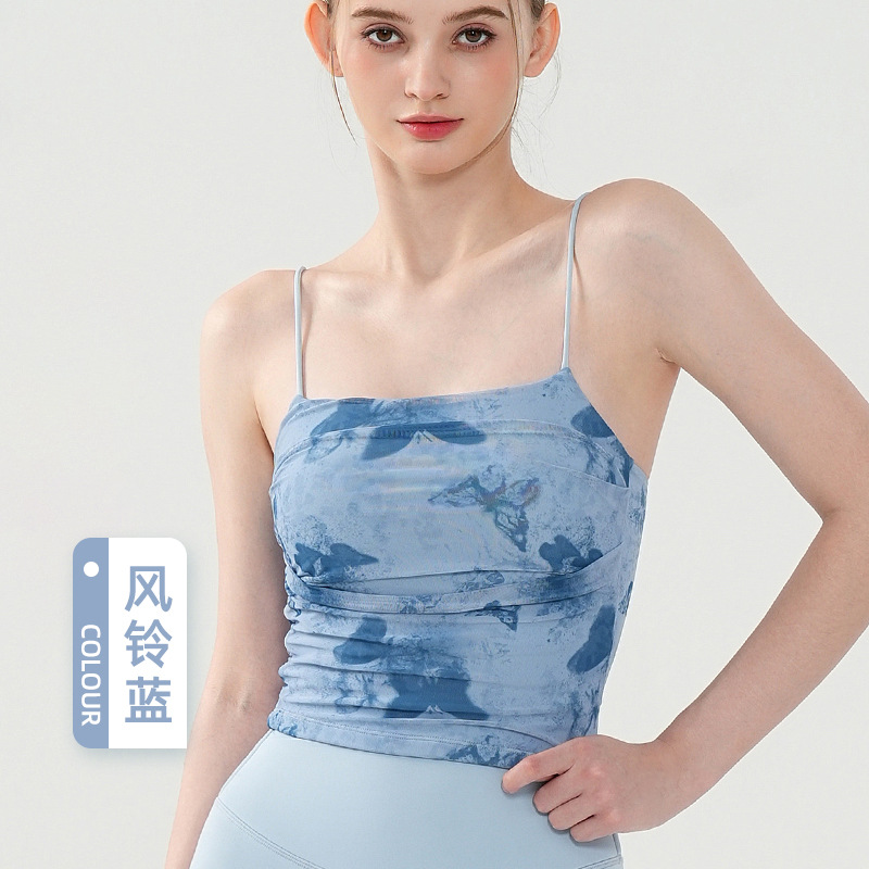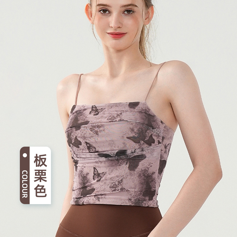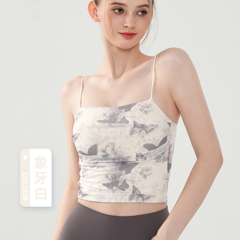 나비 프린트 서스펜더 브라 여성용 통기성 메쉬 슬림 섹시 요가웨어 아름다운 등 올인원 컵 스포츠 브라스토어 가기