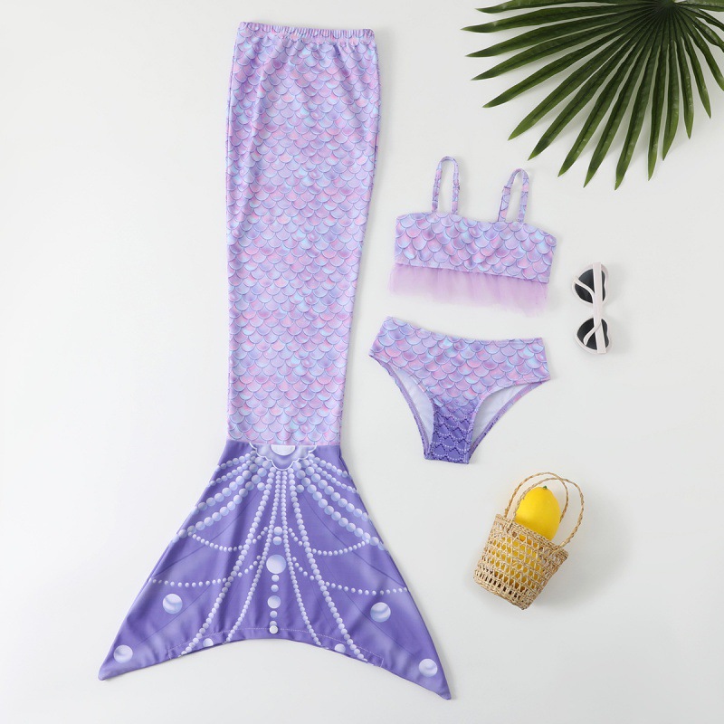 여아 인어 수영복 여름 신상 어린이 인어 꼬리 공주 드레스 분리형 비키니 온천 수영복