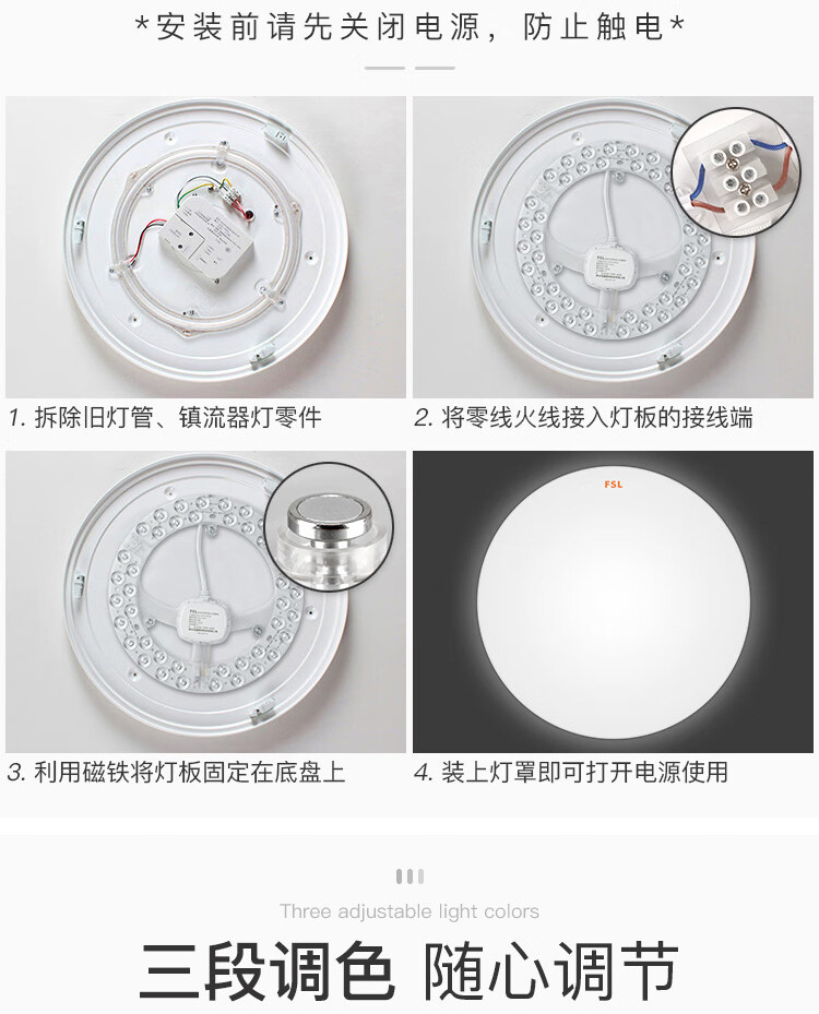 FSL 불산 조명 led 천장 램프 윅 라운드 교체 마그네틱 램프 패널 거실 하이라이트 램프 패널 에너지 절약 램프 코어스토어 가기