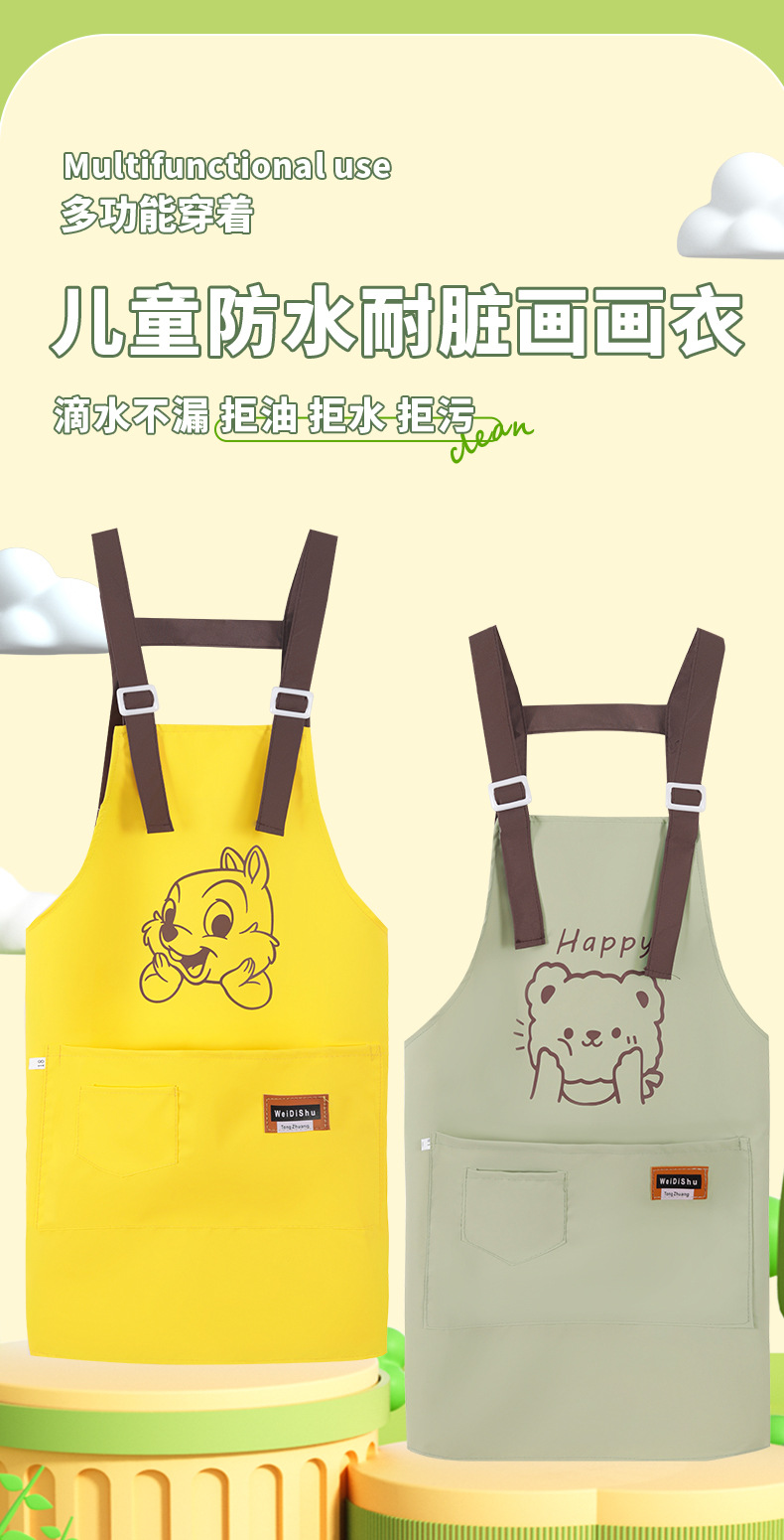 앞치마 아기 그림 옷 방수 및 더러운 저항하는 어린이 가정 유치원 민소매 스트랩 작은 앞치마 커버 옷을 먹고