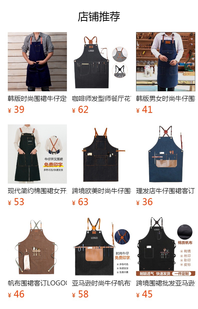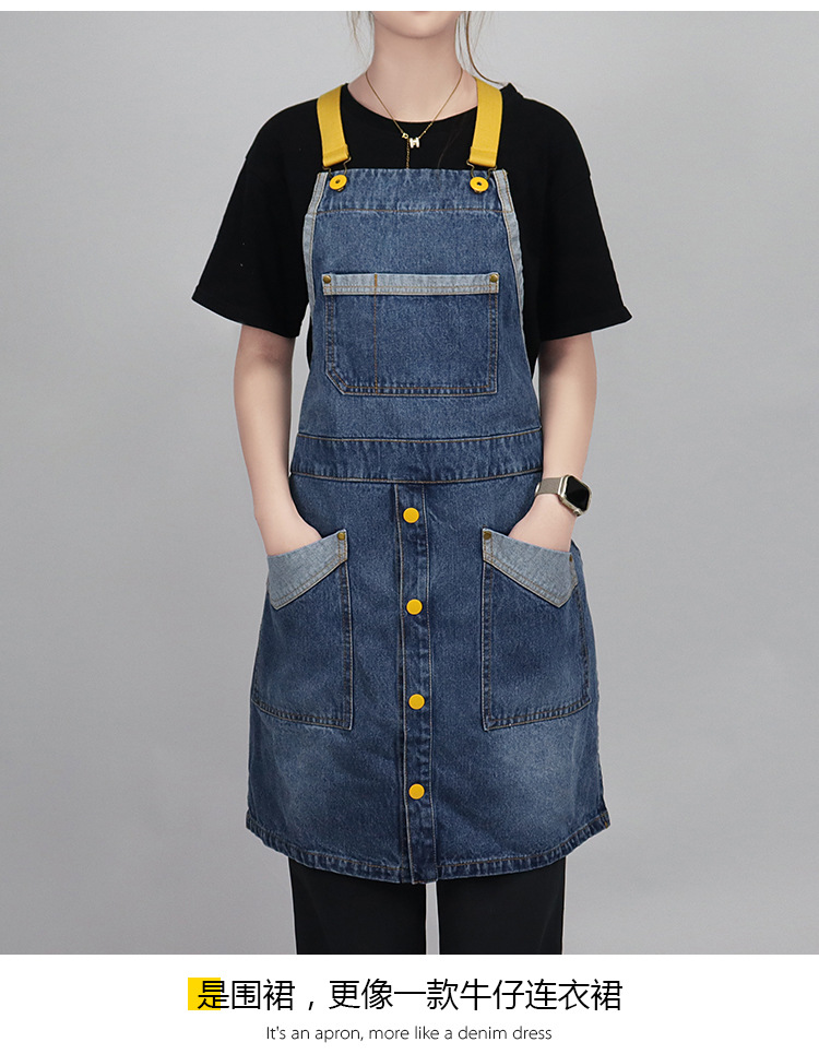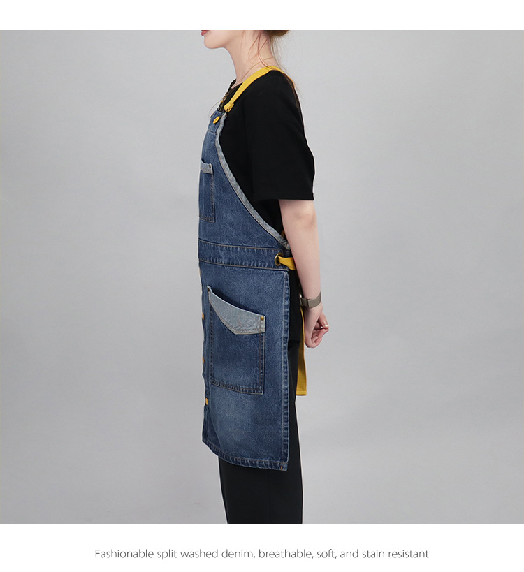 국경 패션 새로운 앞치마 홈 주방 커피 숍 사무실 노동자 패션 주방 홈 도매 데님 앞치마스토어 가기