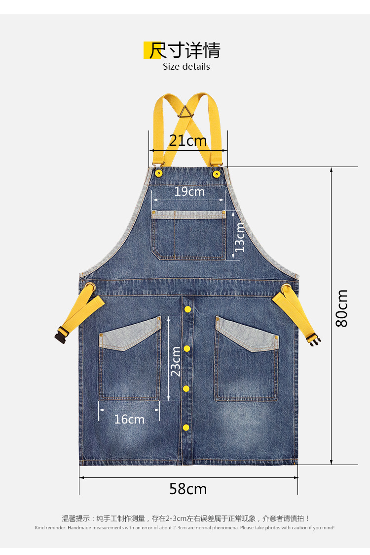 국경 패션 새로운 앞치마 홈 주방 커피 숍 사무실 노동자 패션 주방 홈 도매 데님 앞치마