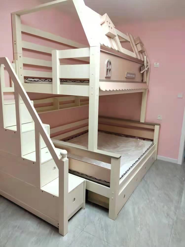 단단한 나무 침대 2 층 높고 낮은 침대 어머니 침대 저장 벙크 침대 소녀 공주 어린이 침대 핑크 침대 침대 침대